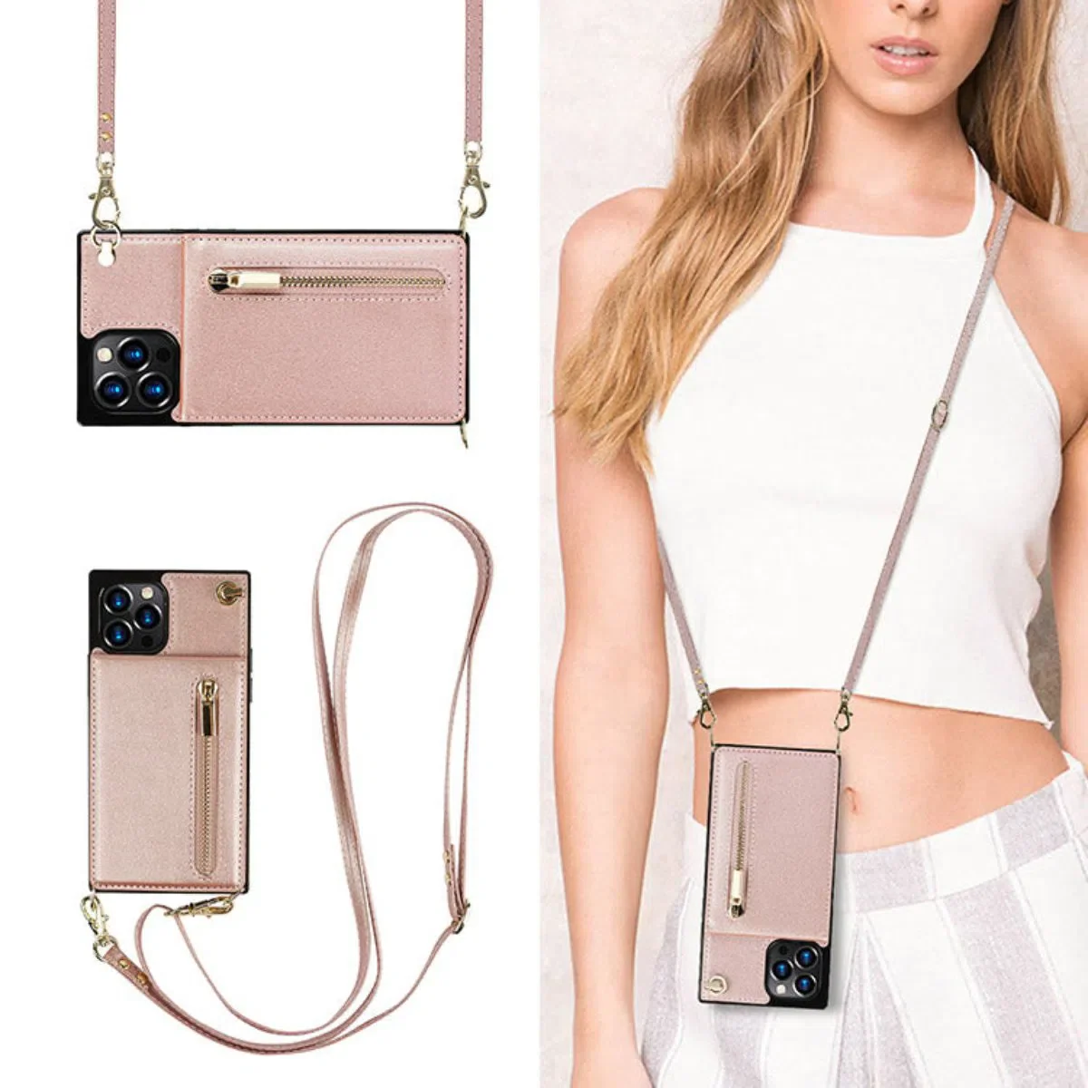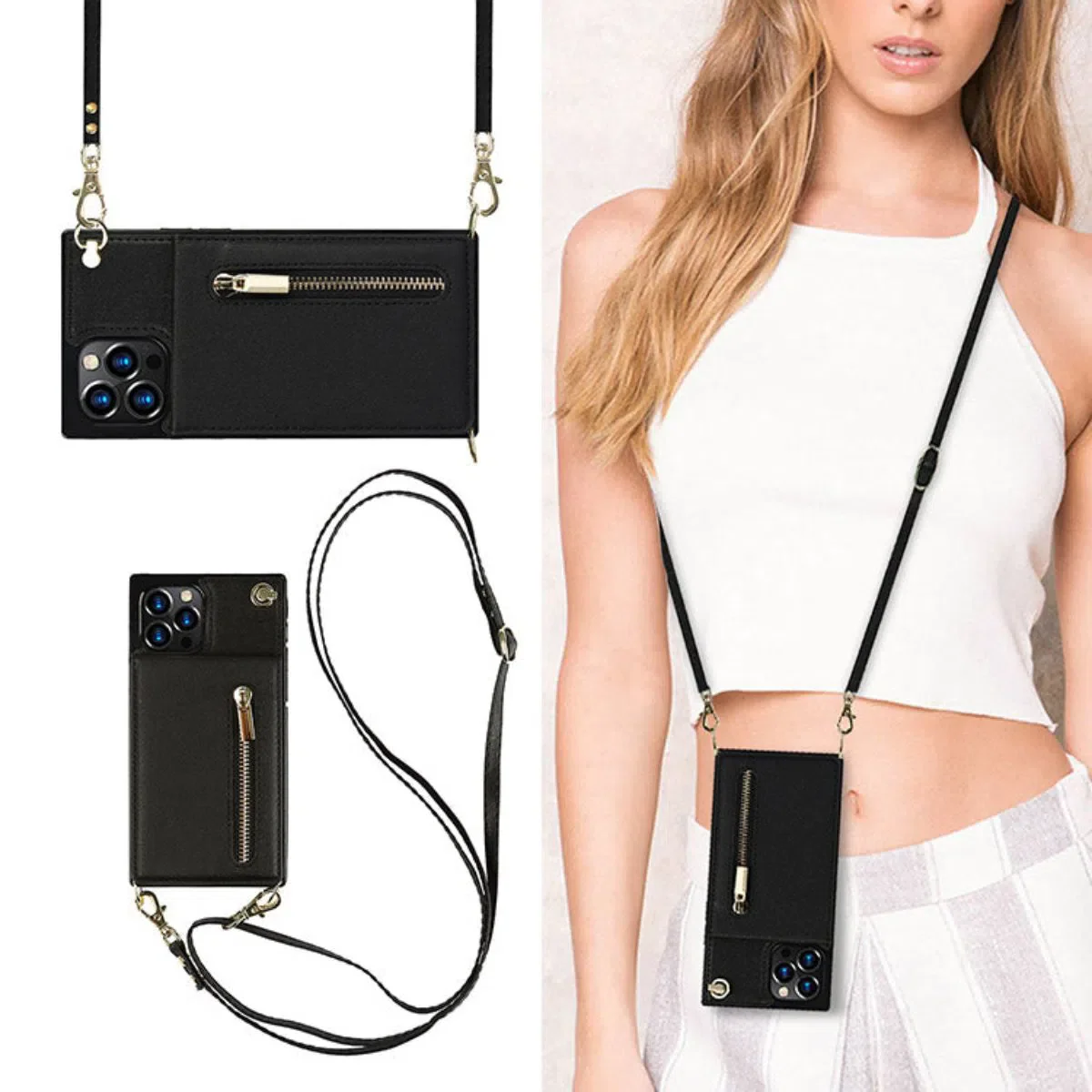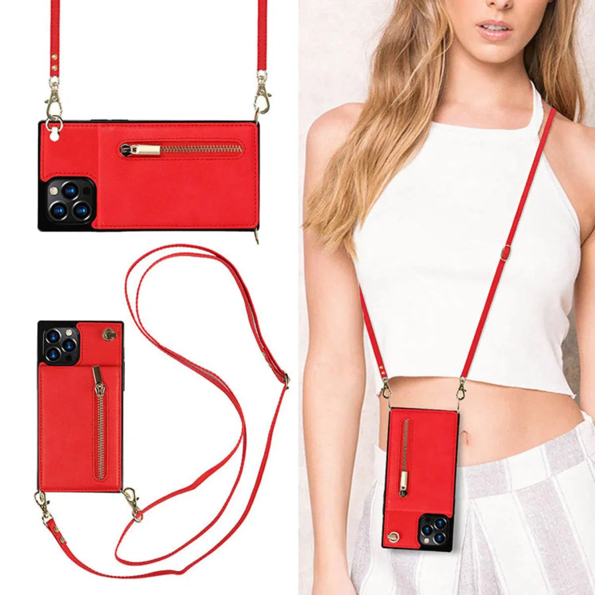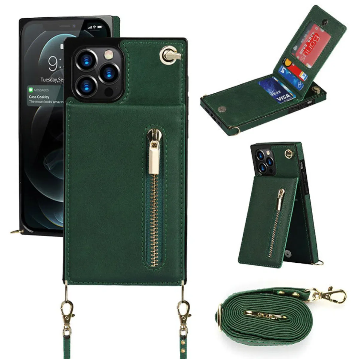 Hqcasing Crossbody Wallet Phone Case, 5 Card Slots, Premium Leather, Kickstand Shockproof Case