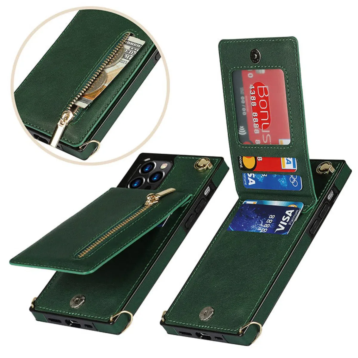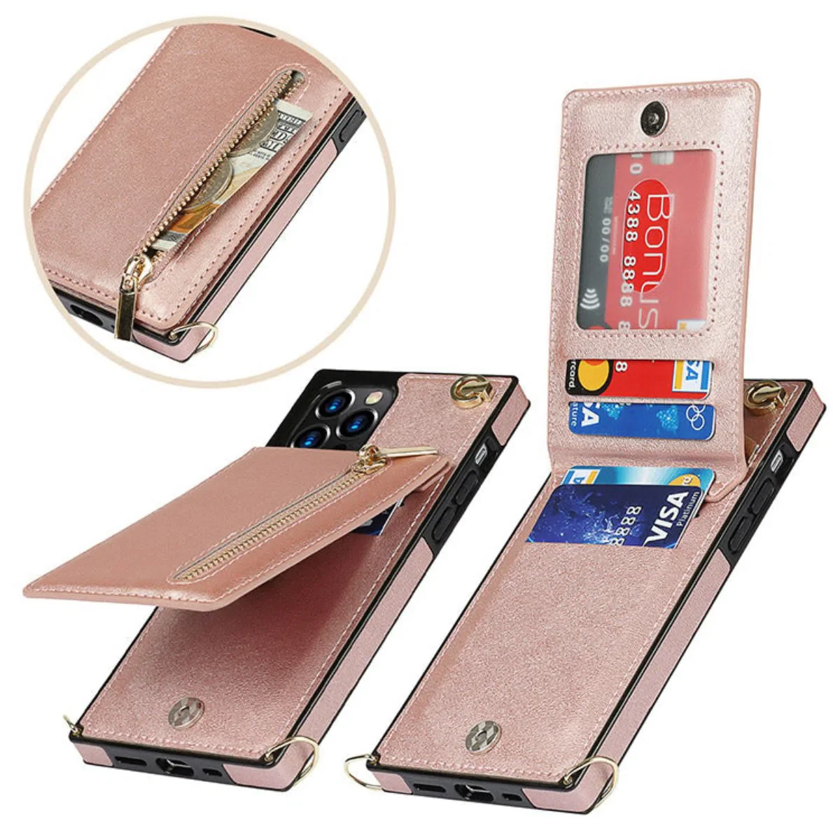 • Zipper Wallet Case Card Slots: This wallet cases accommodate 11 cards or some bills. Unique design of ample room meets your need to large capacity. Separated space for cards or cash helps storing better or taking out.