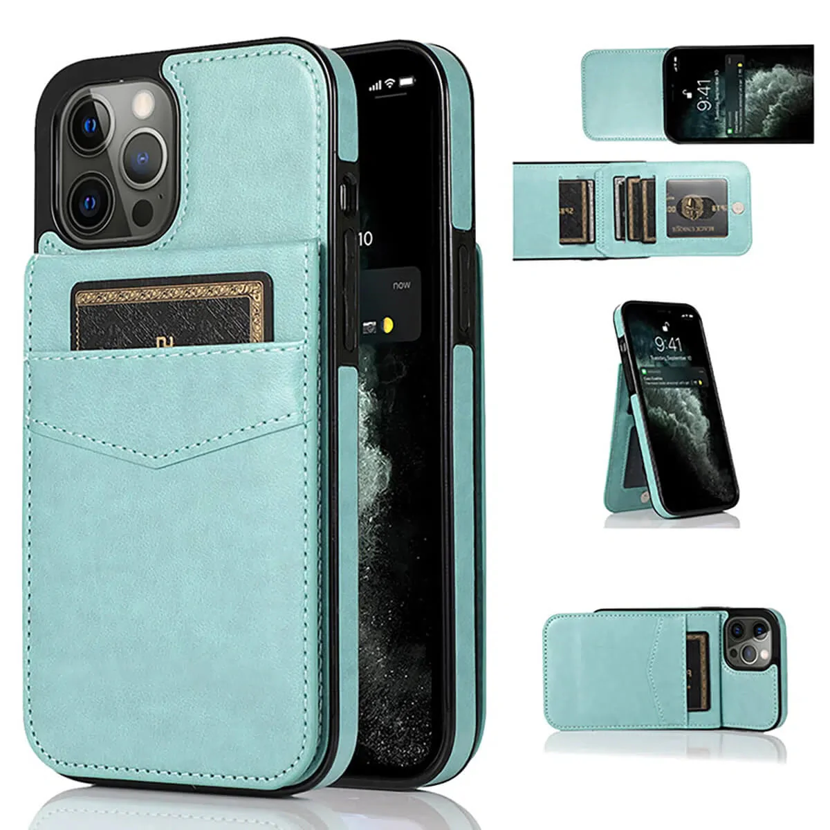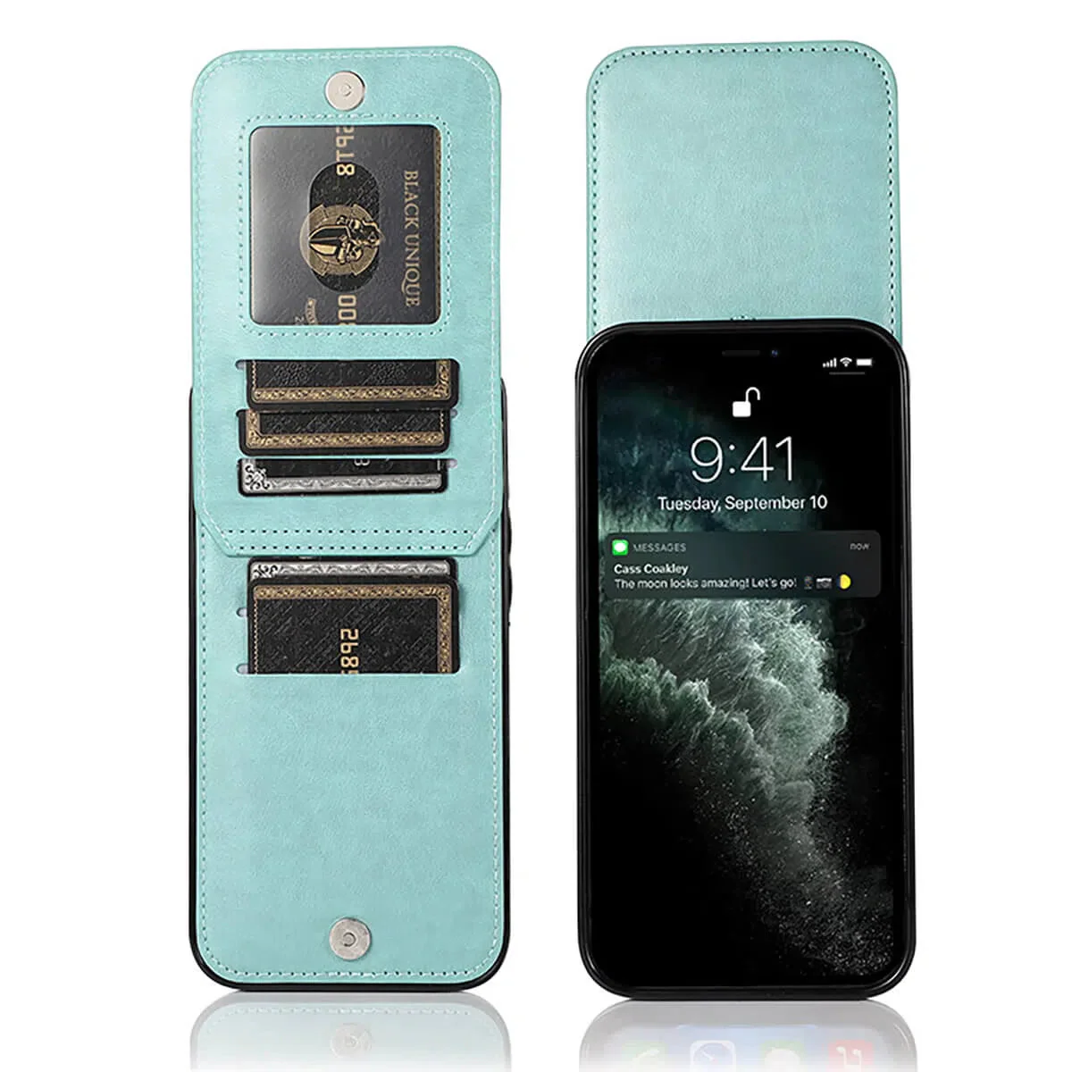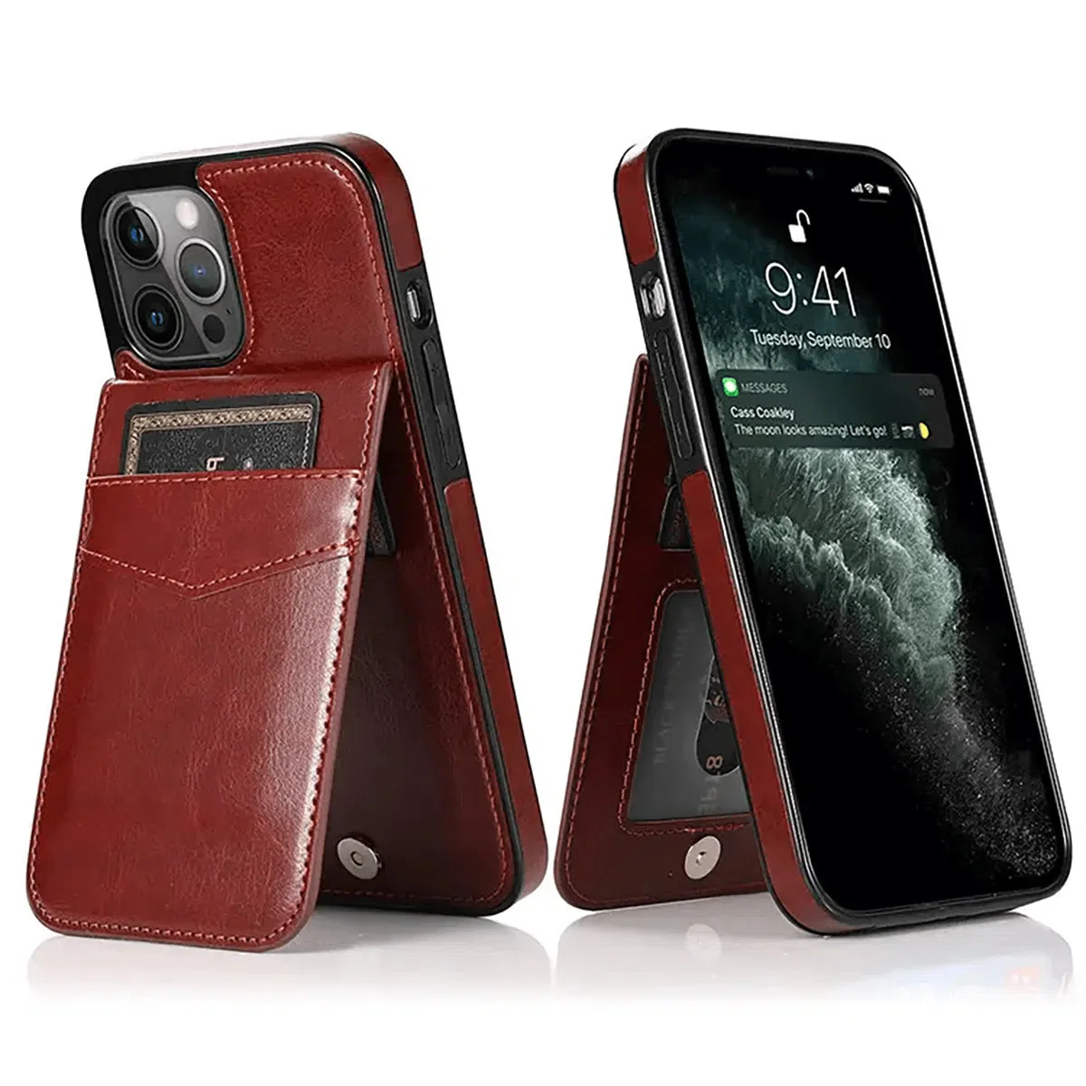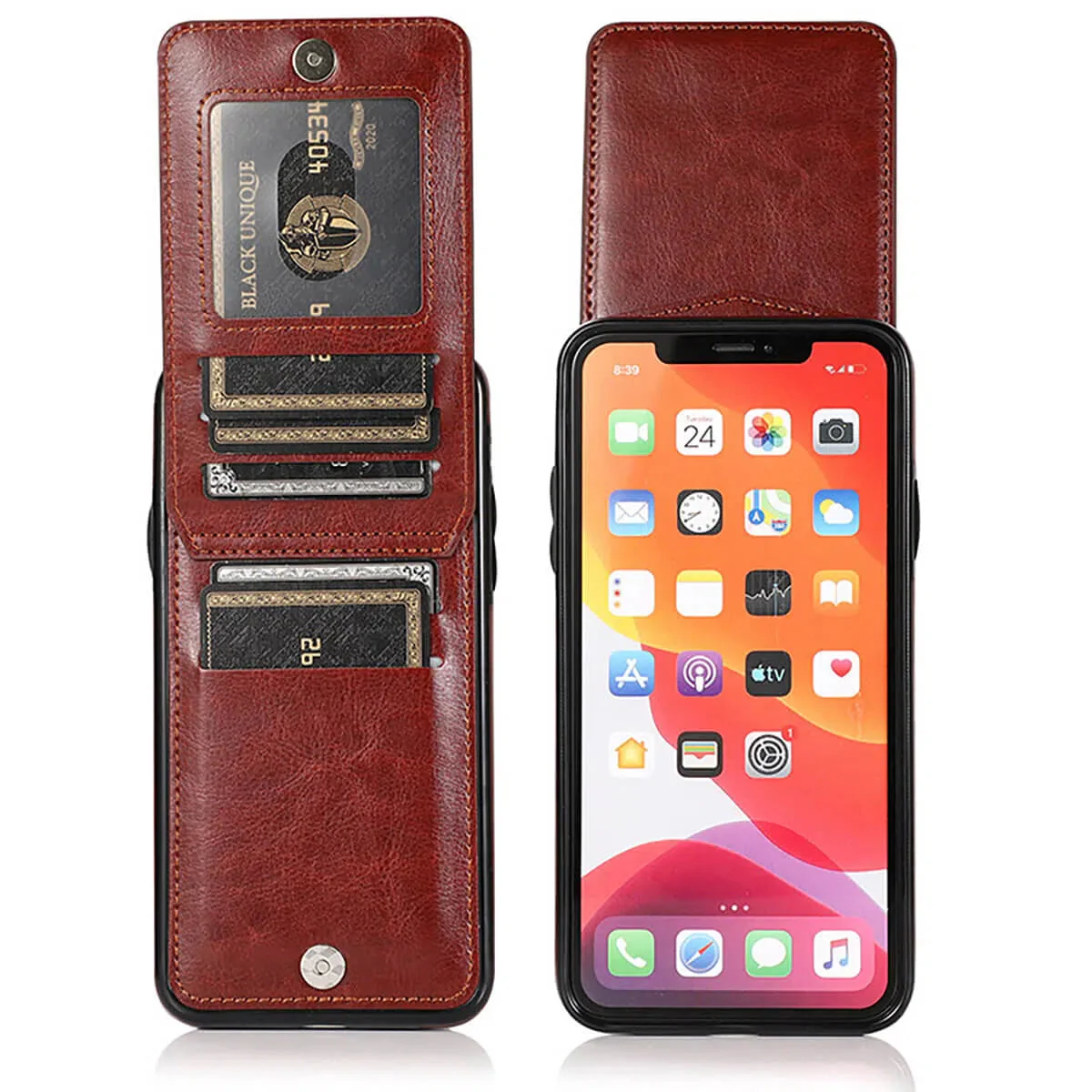 Hqcasing Classic 5-6 Card Slots Wallet Phone Case, Premium Leather, Credit Card Holder, Flip, Kickstand Shockproof Case