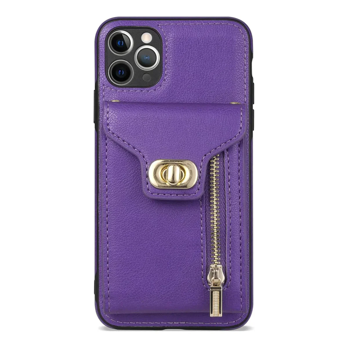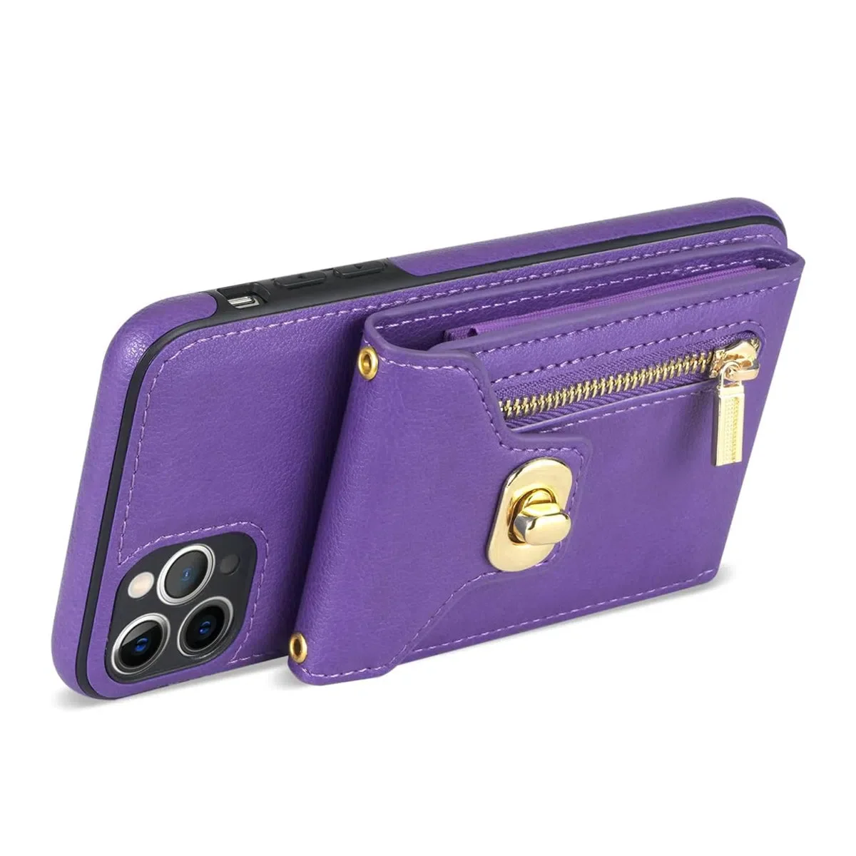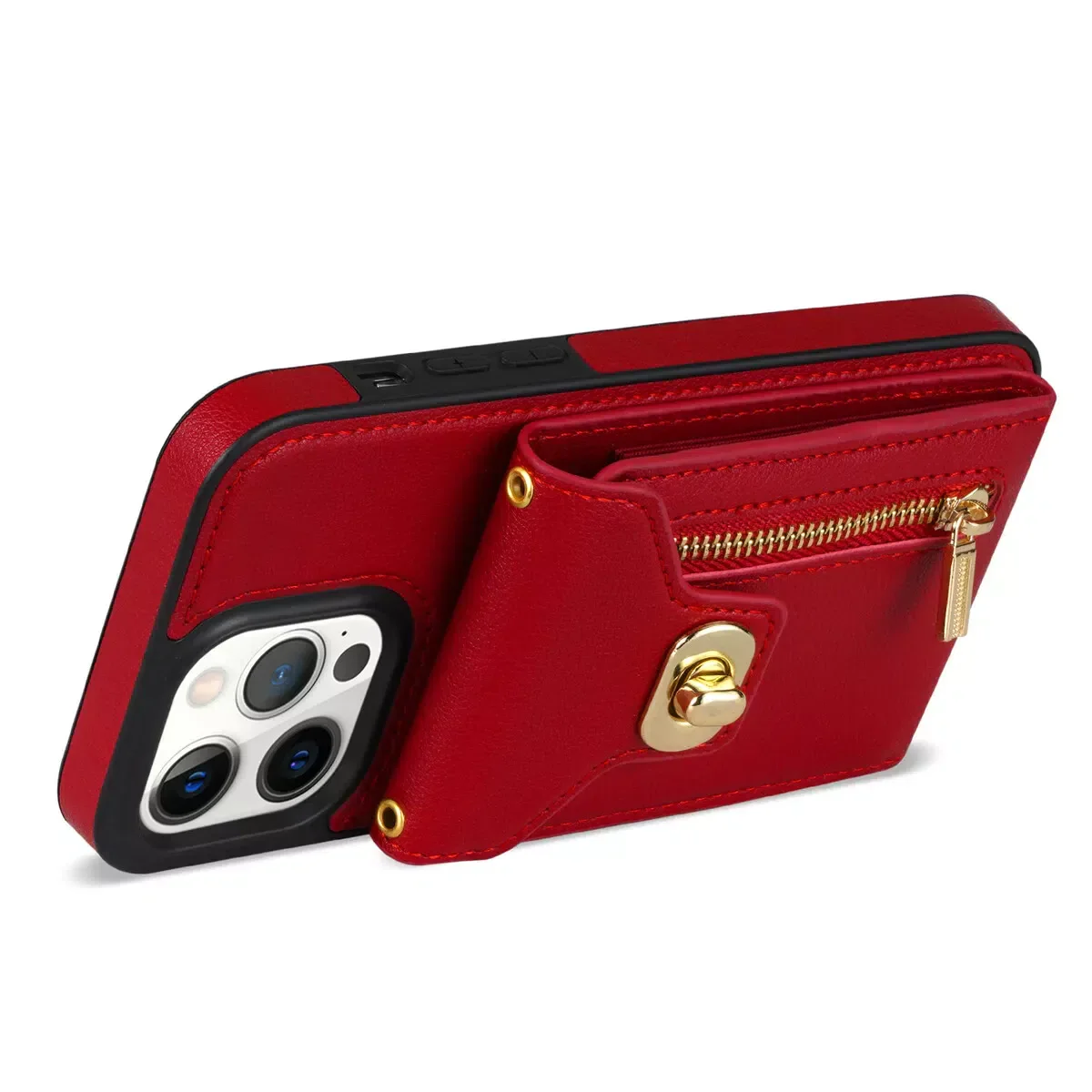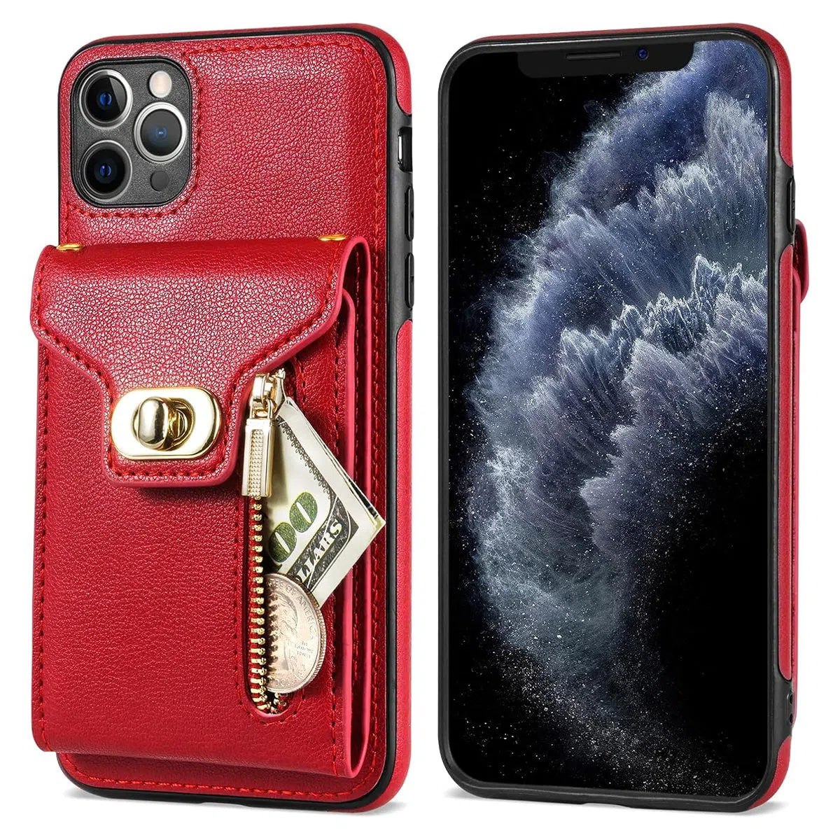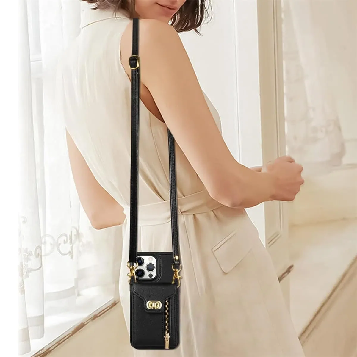 Hqcasing Detachable Lanyard Leather Case Wallet Case Card Slot Shockproof Kickstand Zipper Closure Flip Leather Case for iPhone