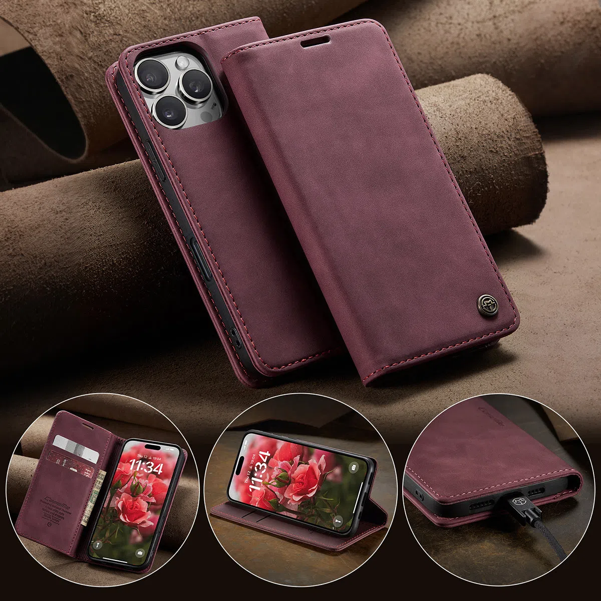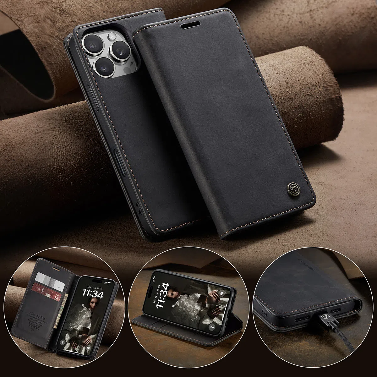 Caseles Magnetic Flip Leather Card Wallet Case for iPhone, Kickstand & Drop Protection