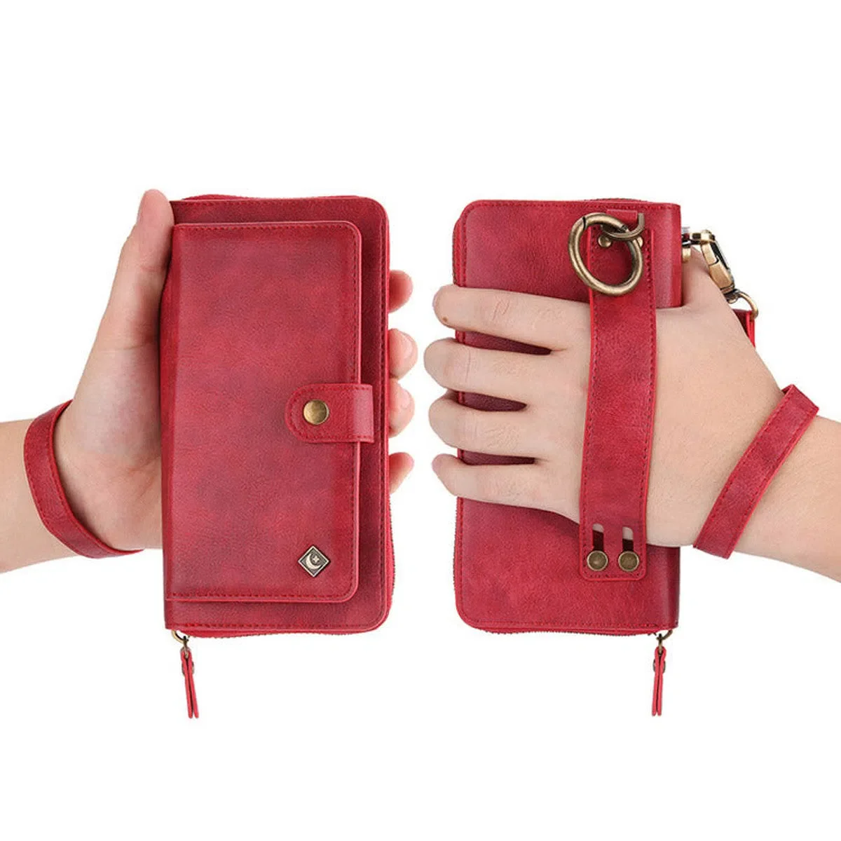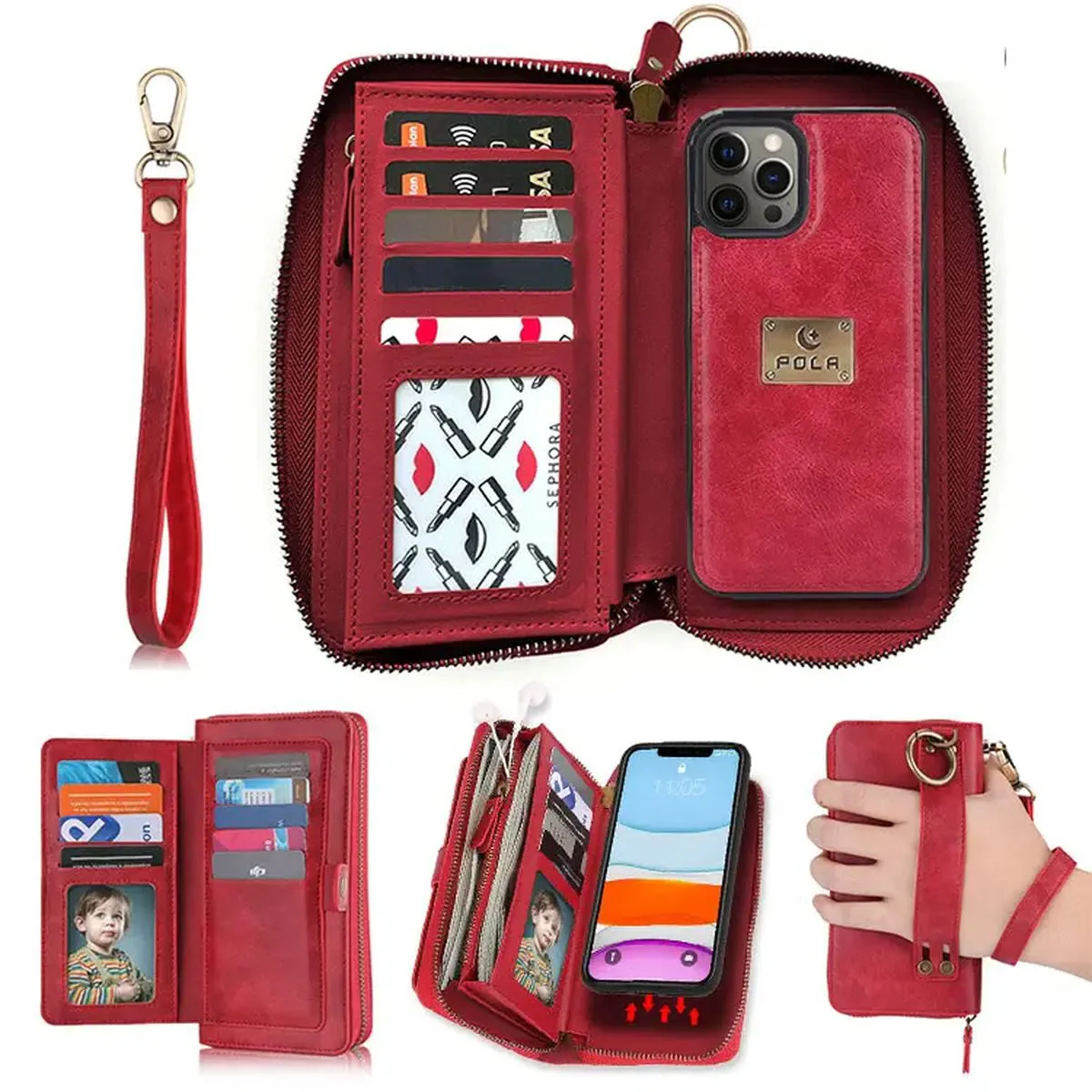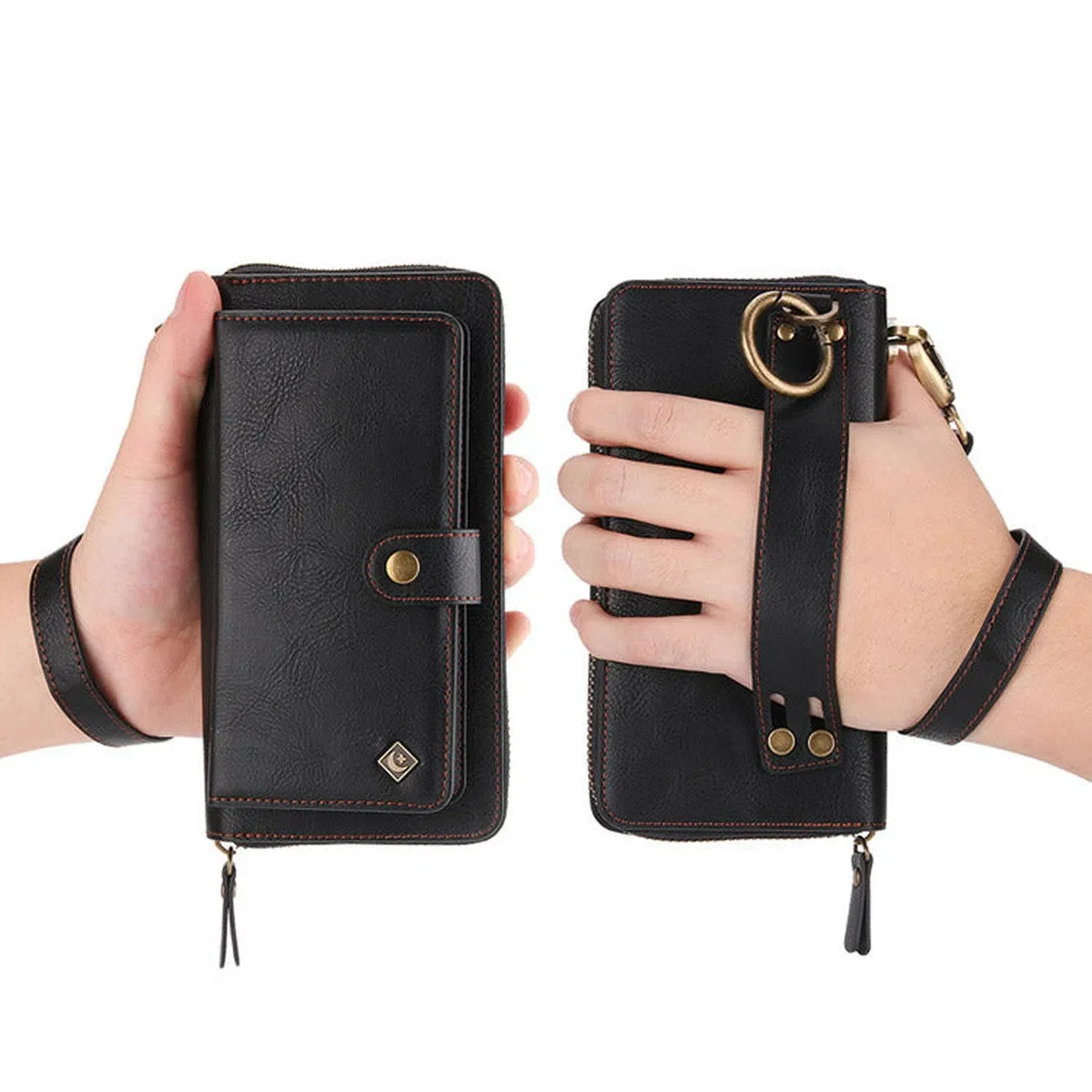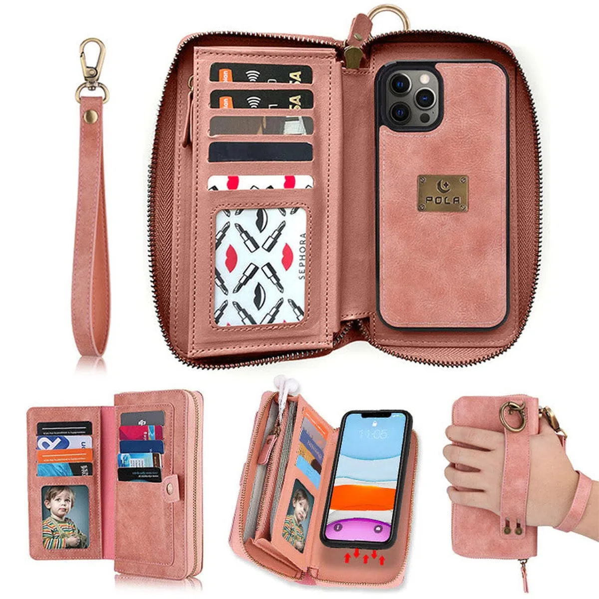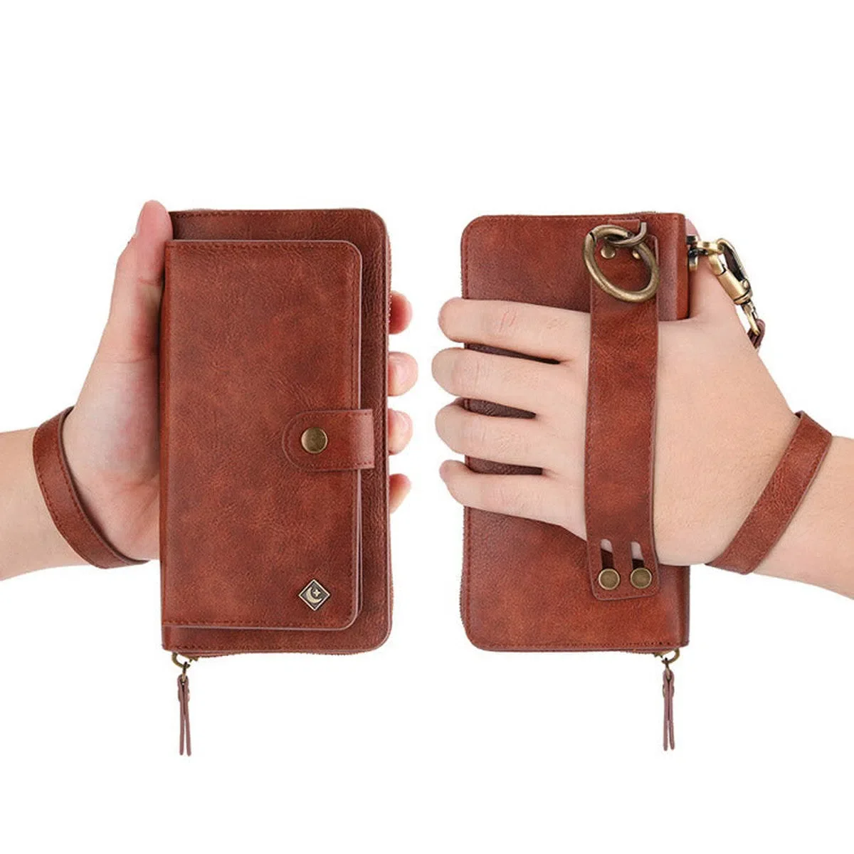 Hqcasing Multi Functional Wallet Phone Case, 14 Card Slots 3 Purse 1 Zipper 1 Wrist Band 1 Metal Buckle, Wrist Strap Clutch Magnetic Detachable