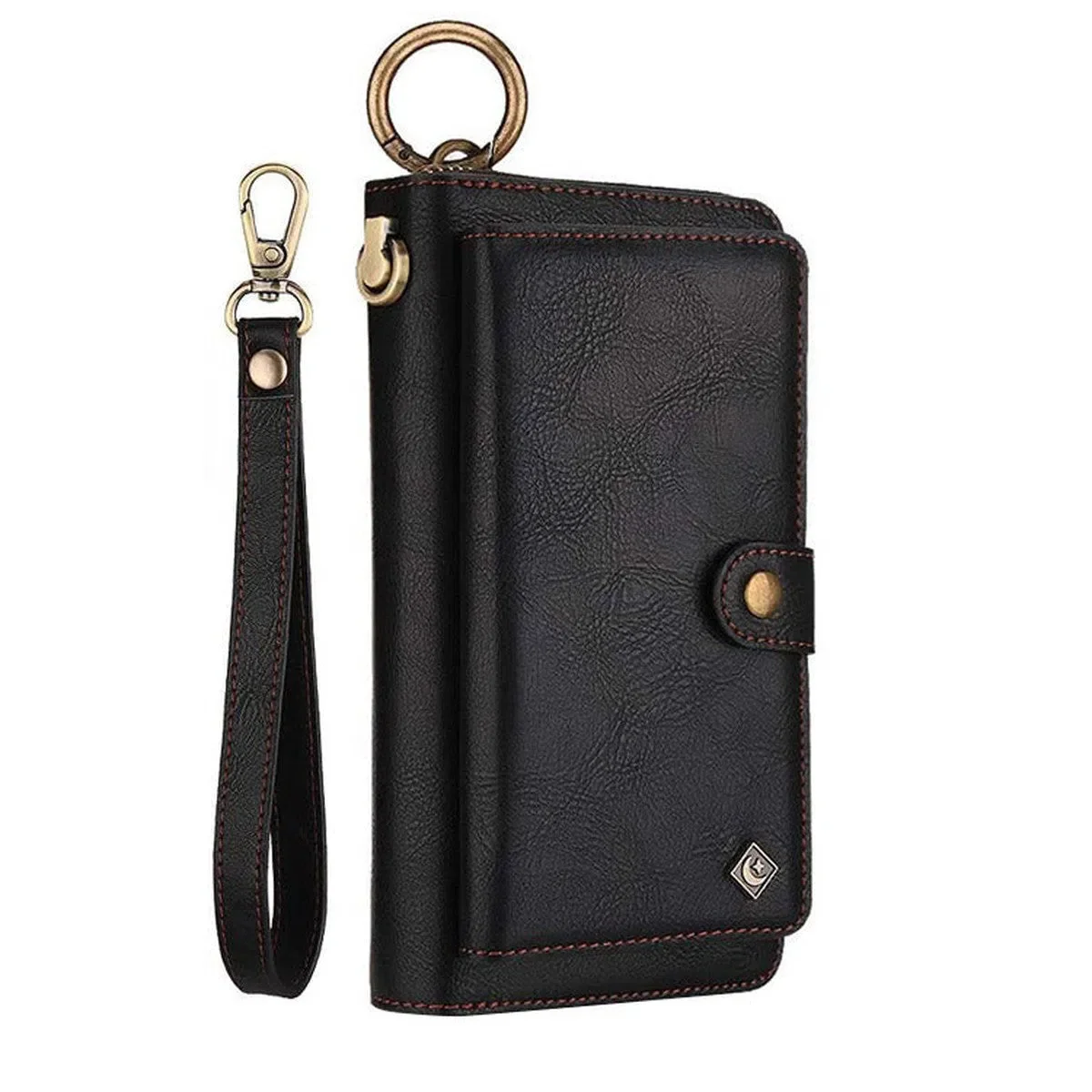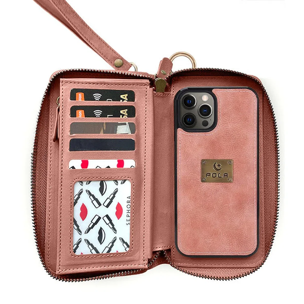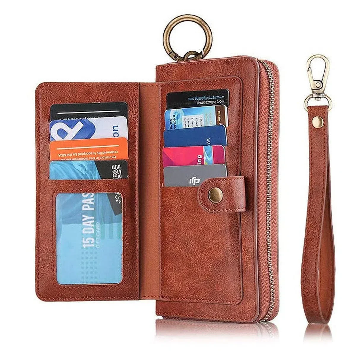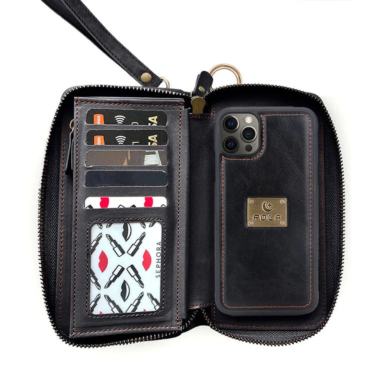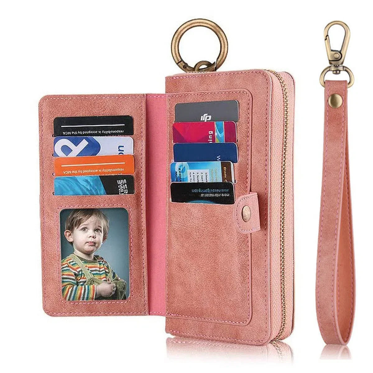 Hqcasing Multi Functional Wallet Phone Case, 14 Card Slots 3 Purse 1 Zipper 1 Wrist Band 1 Metal Buckle, Wrist Strap Clutch Magnetic Detachable
