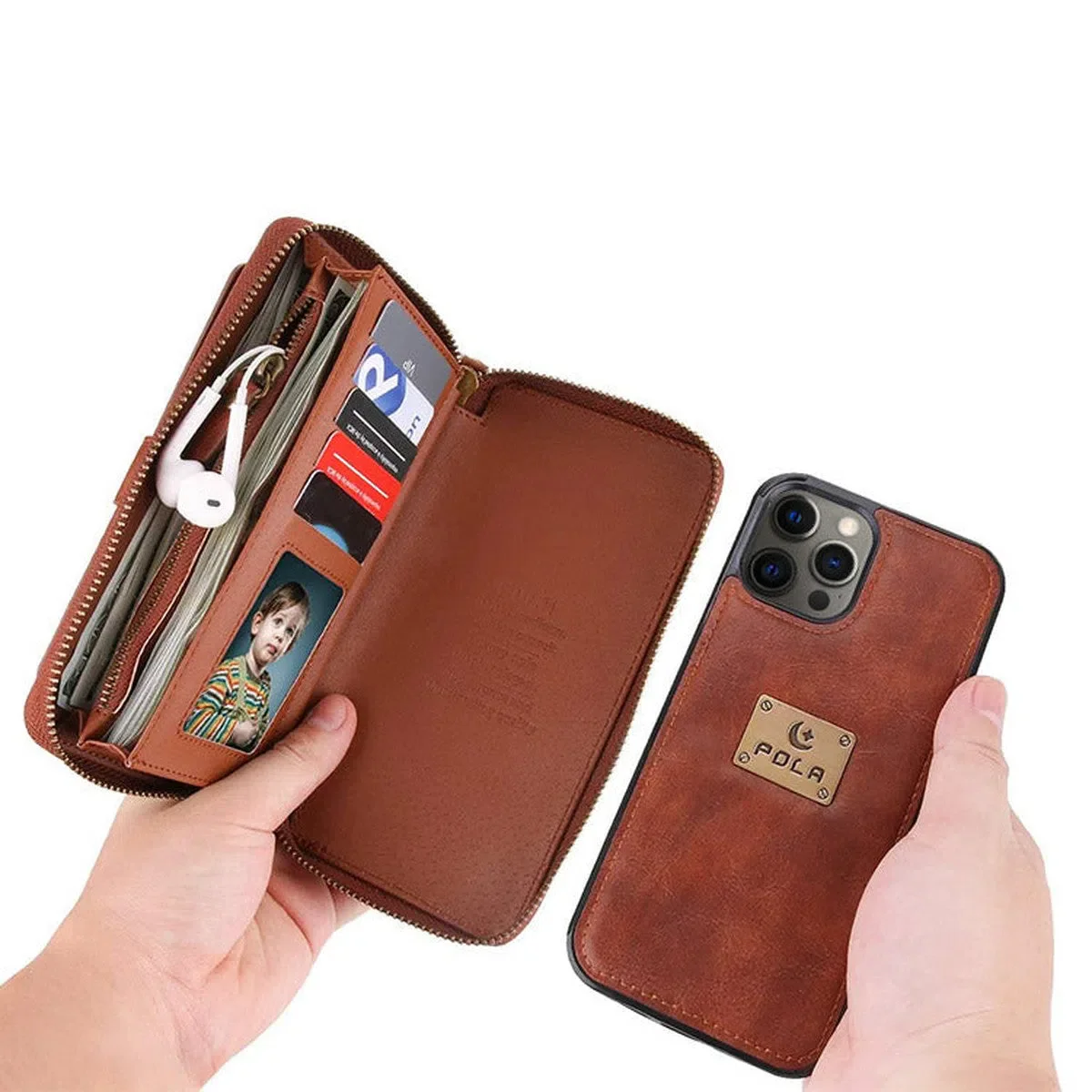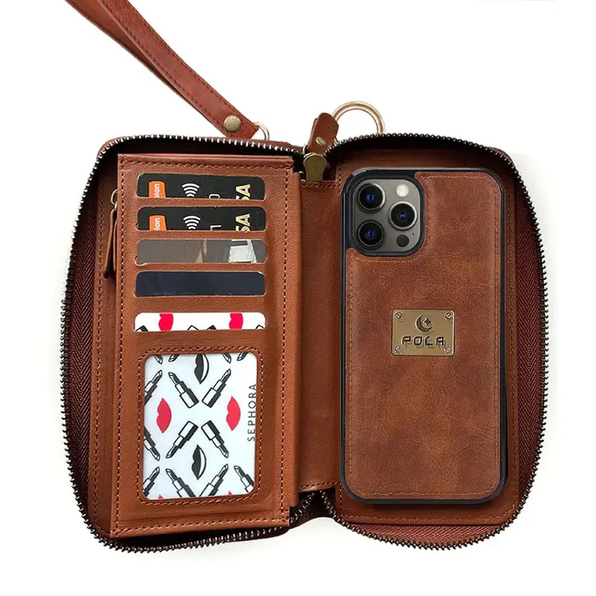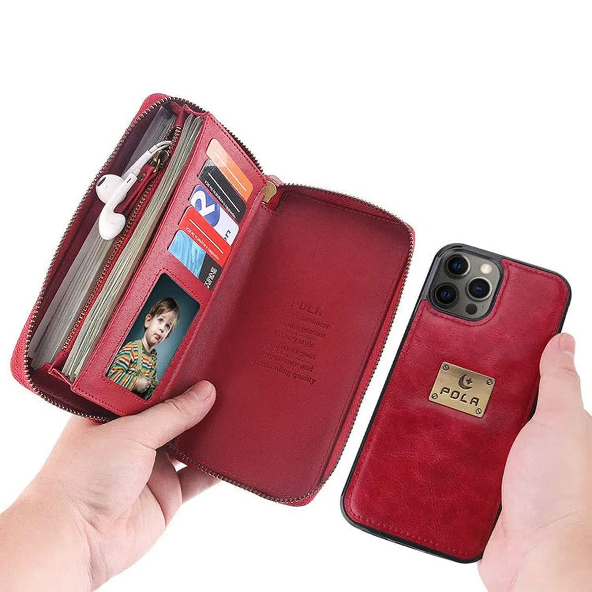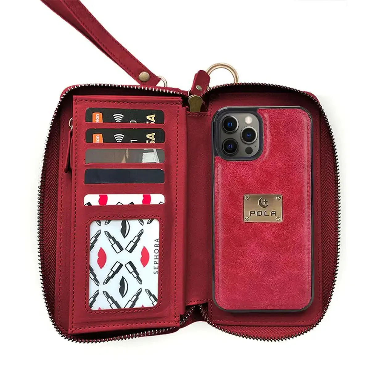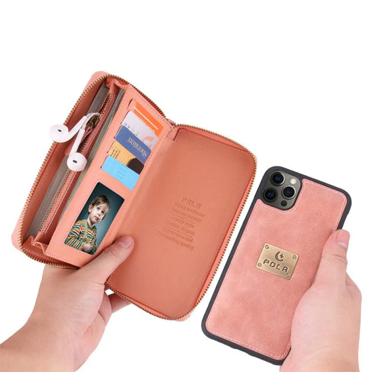 Hqcasing Multi Functional Wallet Phone Case, 14 Card Slots 3 Purse 1 Zipper 1 Wrist Band 1 Metal Buckle, Wrist Strap Clutch Magnetic Detachable