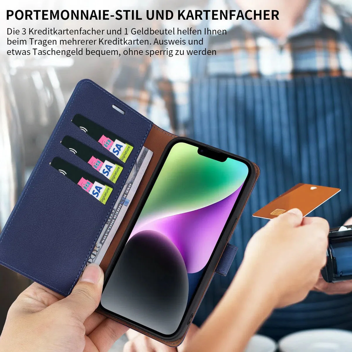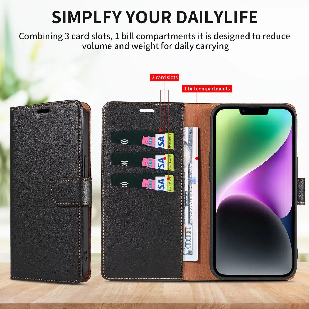 Caseles Magnetic Folio Wallet Phone Case, Premium Leather, Credit Card Holder, Magnetic Closure, Flip Kickstand Shockproof Case