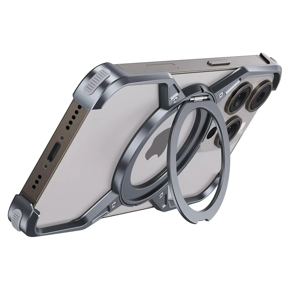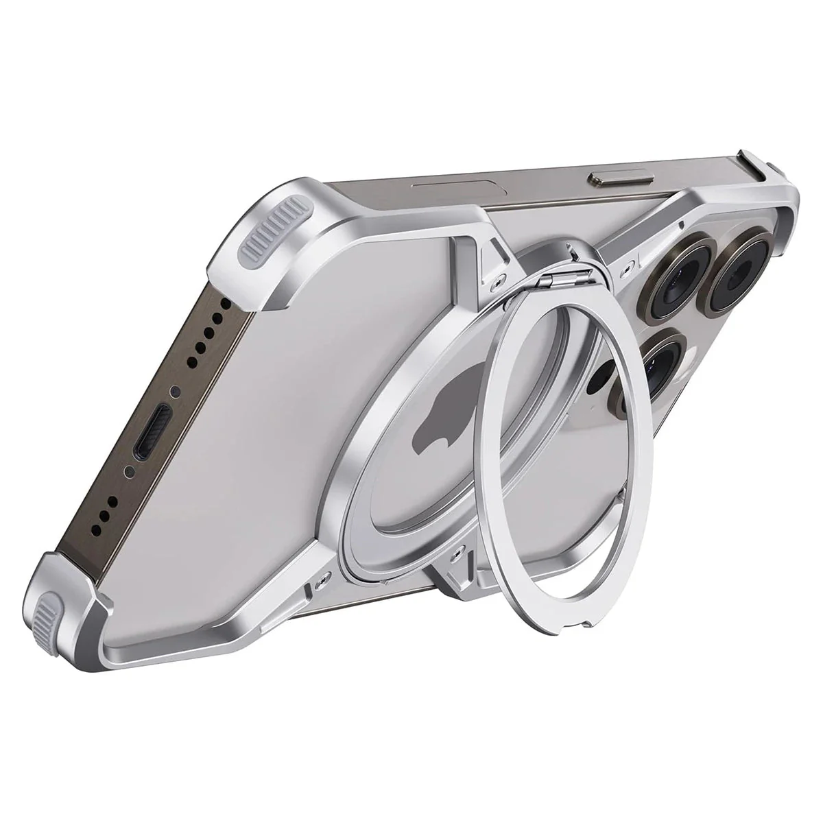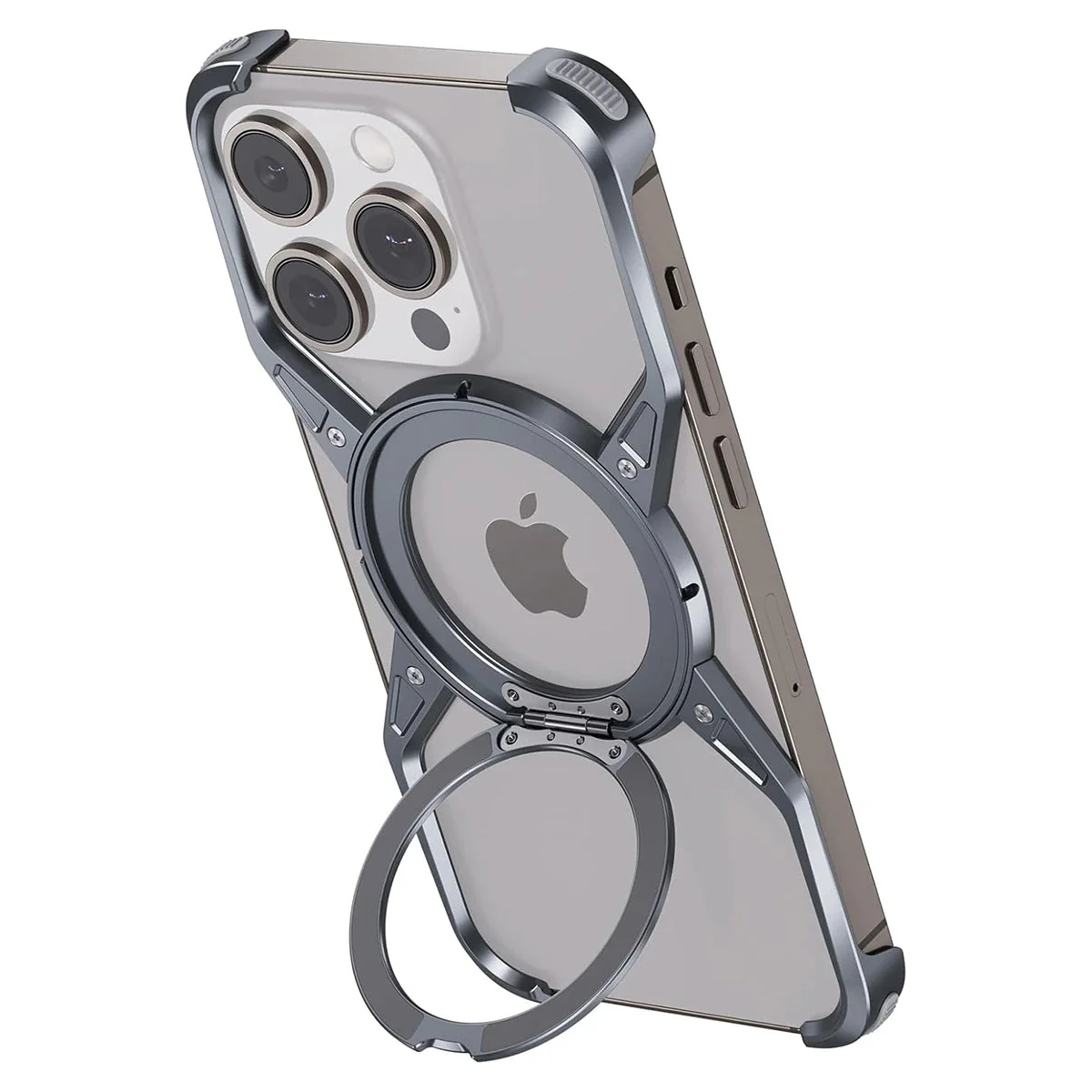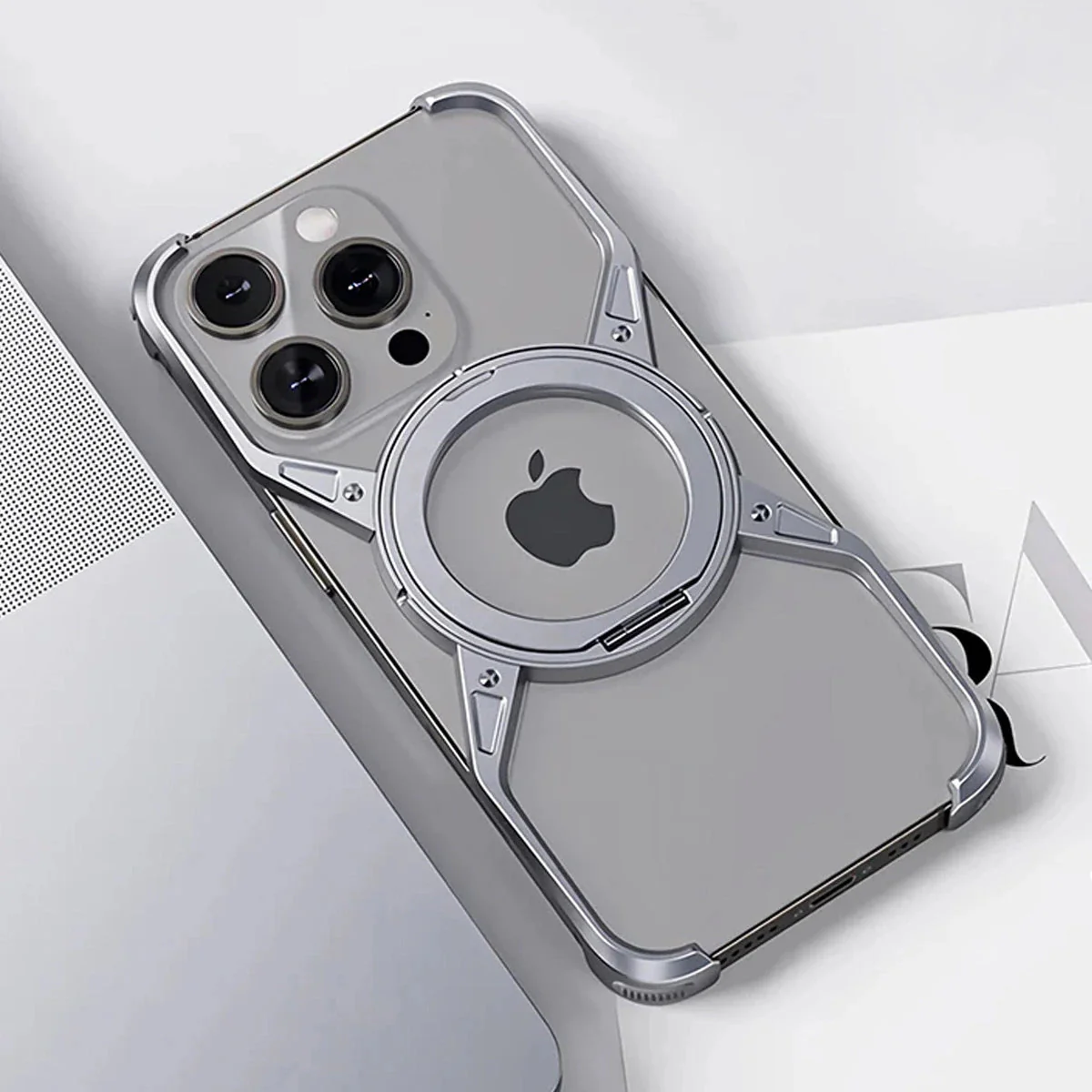 Hqcasing Premium Aluminum Frameless Bumper Case Compatible with iPhone,Cool Design Luxury Metal Shockproof Anti-Scratch Slim Borderless case with Kickstand Magnetic Holder