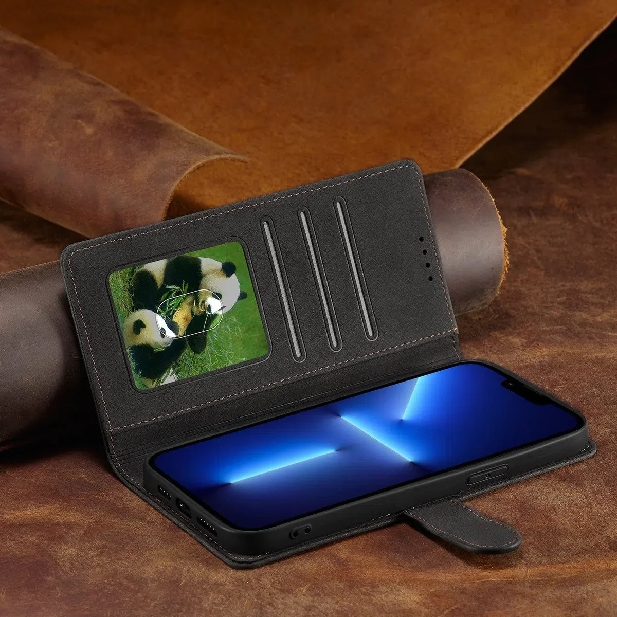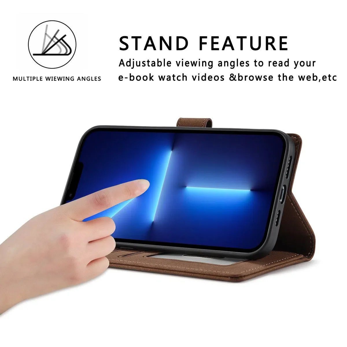Hqcasing Magnetic Folio Wallet Phone Case, Premium Leather, Credit Card Holder, Magnetic Closure, Flip Kickstand Shockproof Case