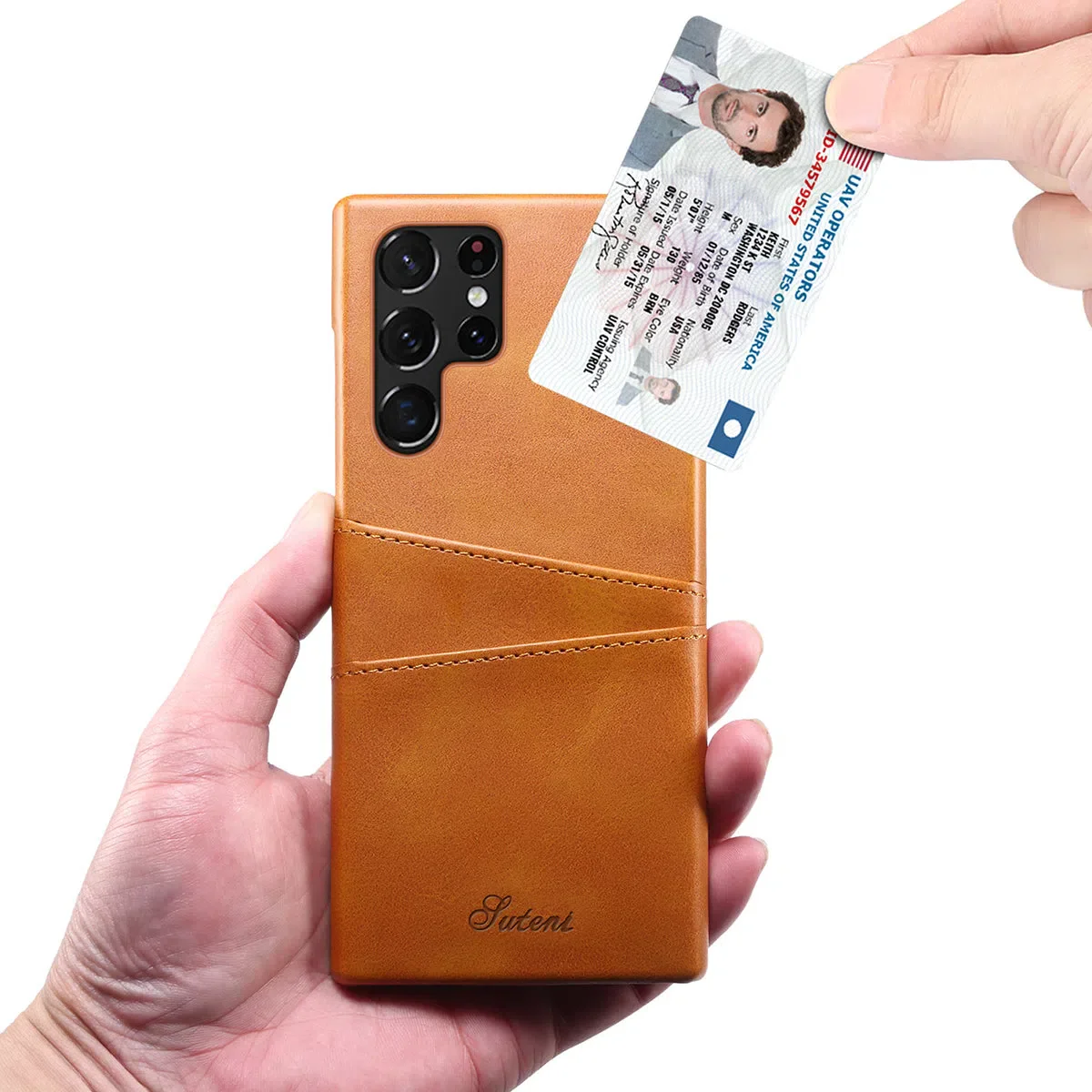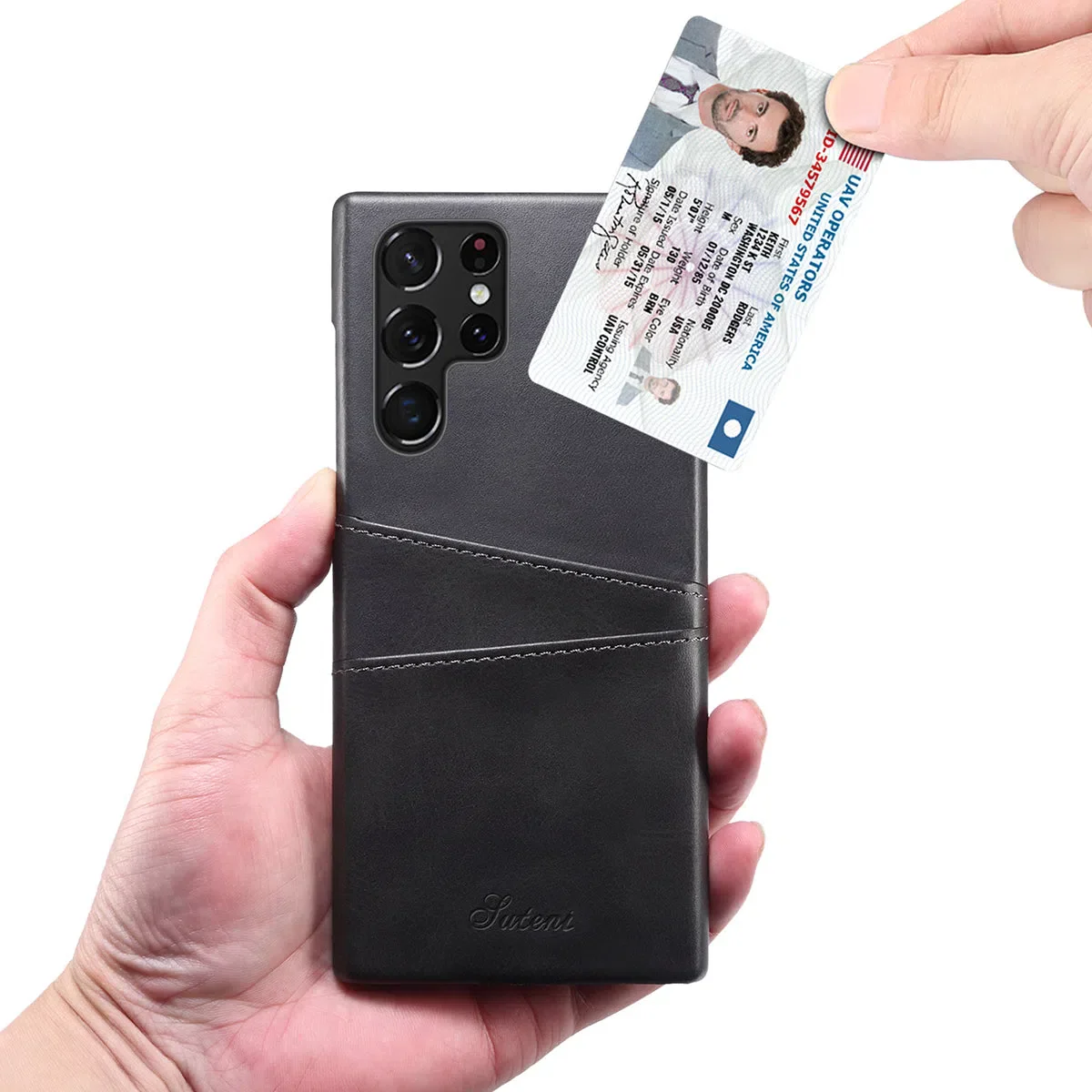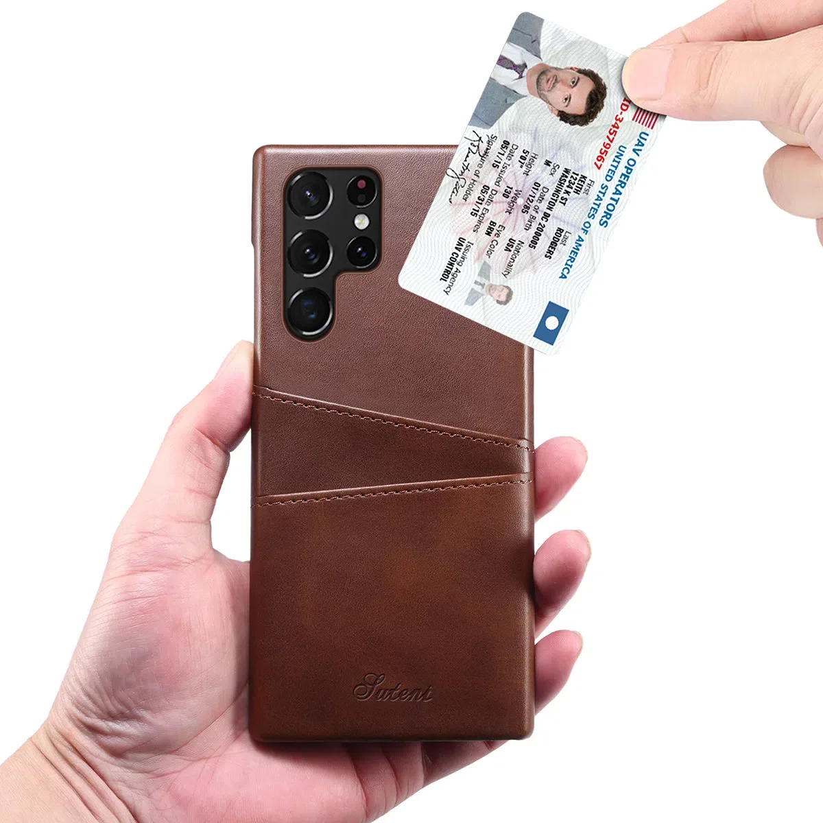 - Leather back case with card slots holder: 2 card / cash slots.It allows you to easily access your cards or cash conveniently. For the best performance, please only insert 1 card for each card slot.