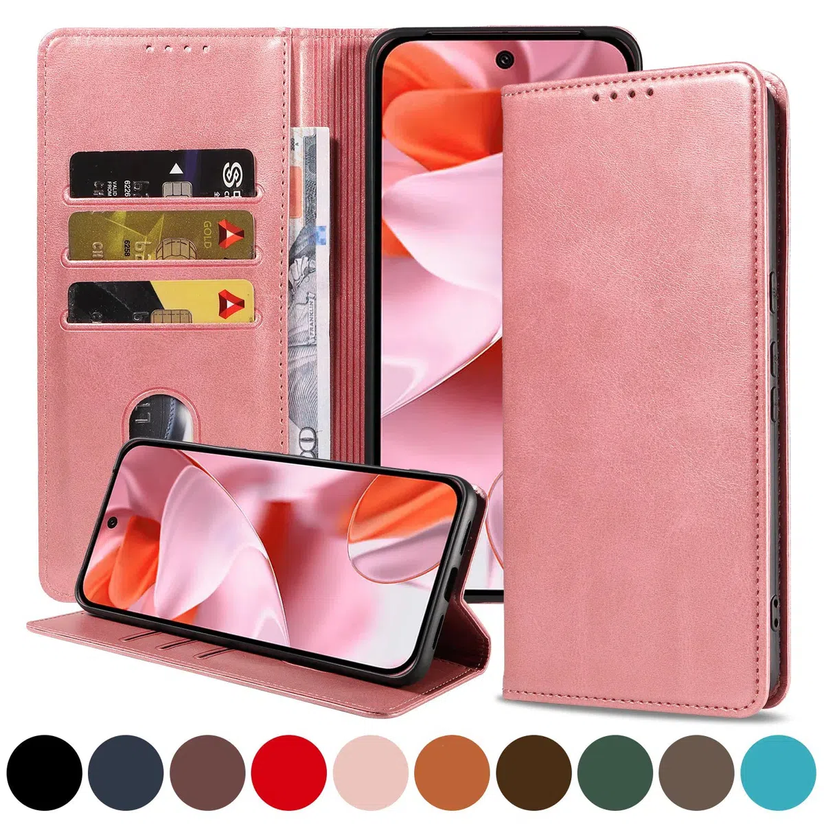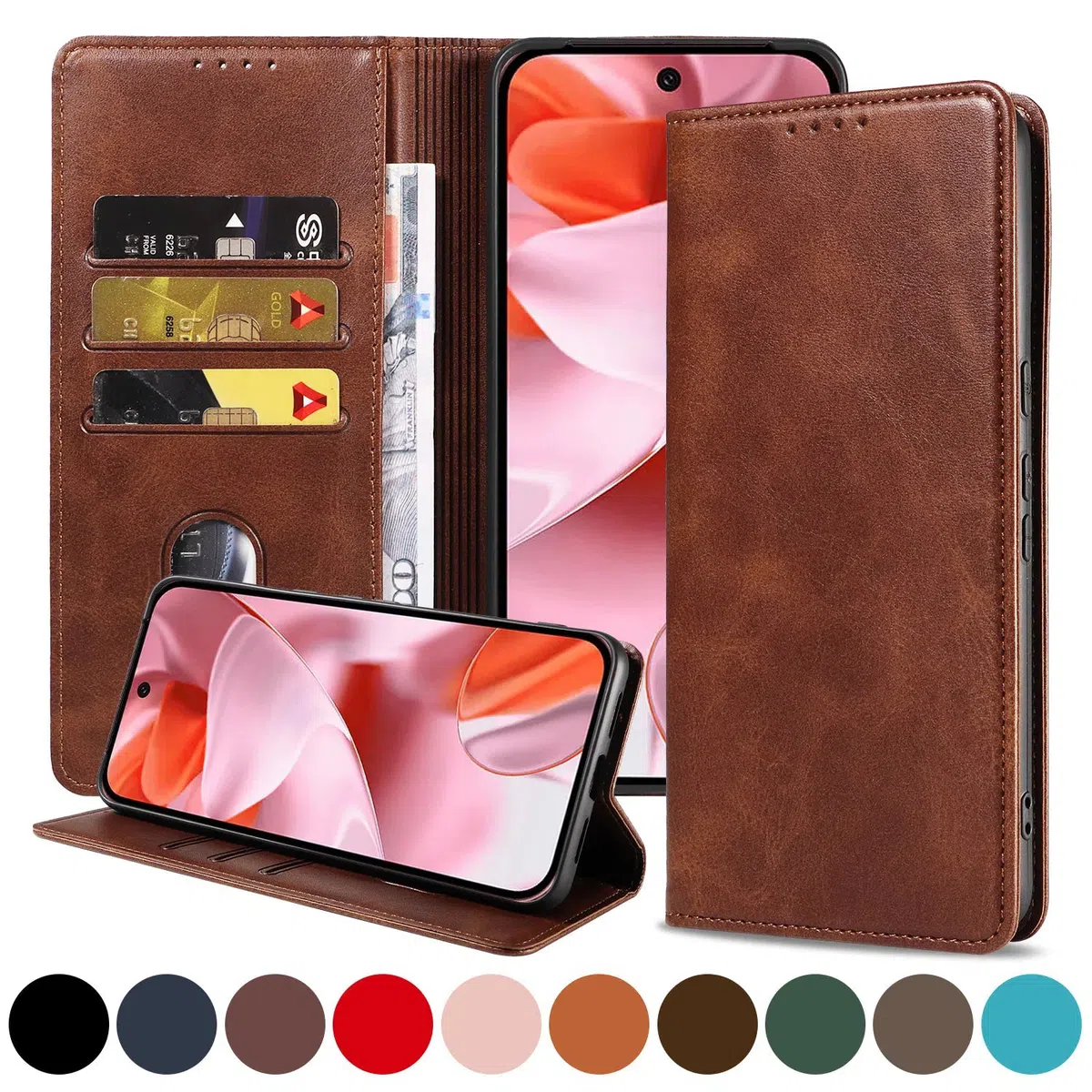 Caseles Magnetic Folio Wallet Phone Case, Premium Leather, Credit Card Holder, Magnetic Closure, Flip Kickstand Shockproof Case
