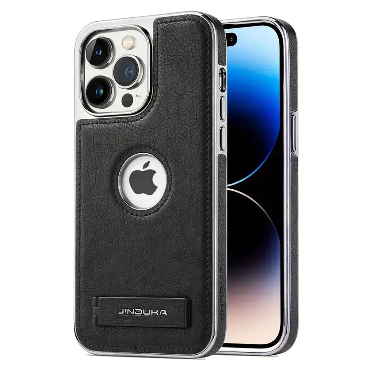 Hqcasing Shockproof Genuine Leather iPhone Case with Stand, Soft TPU Protective Back Cover