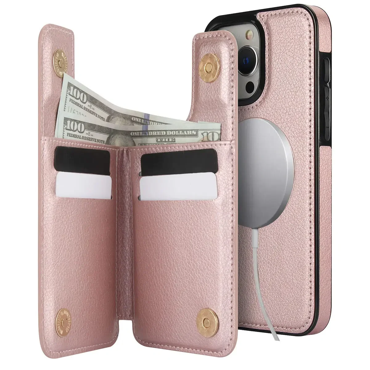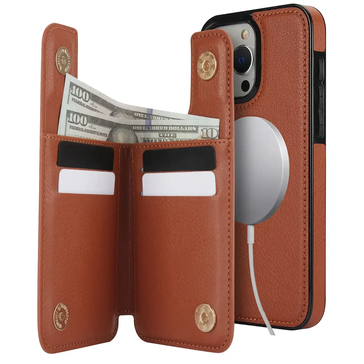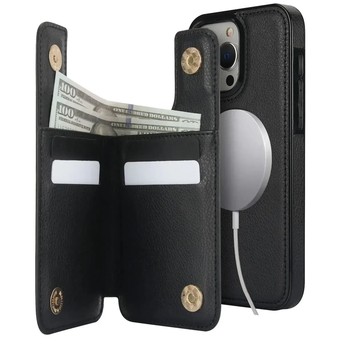 Hqcasing iPhone Wallet Case, 4 Card Slots, Cash Slot, RFID Blocking, Magnetic, MagSafe Compatible