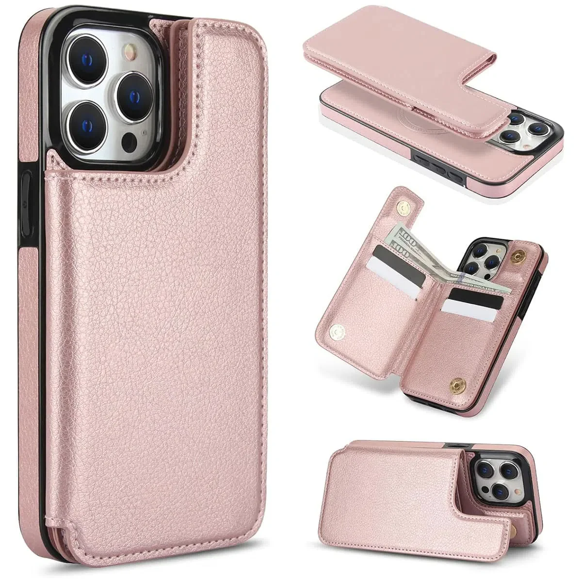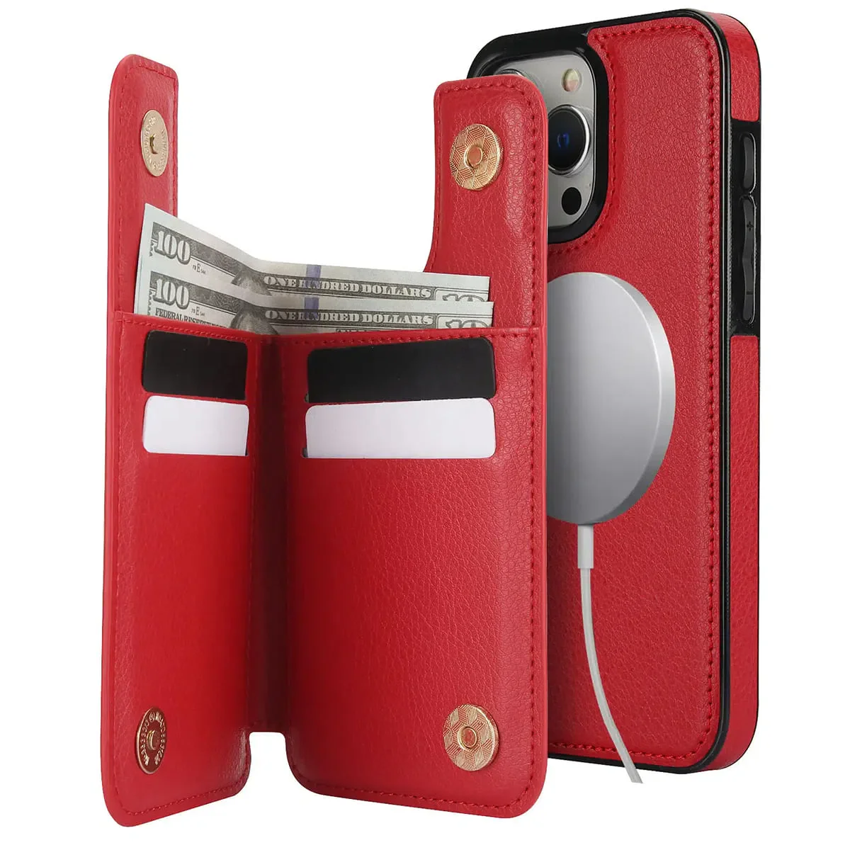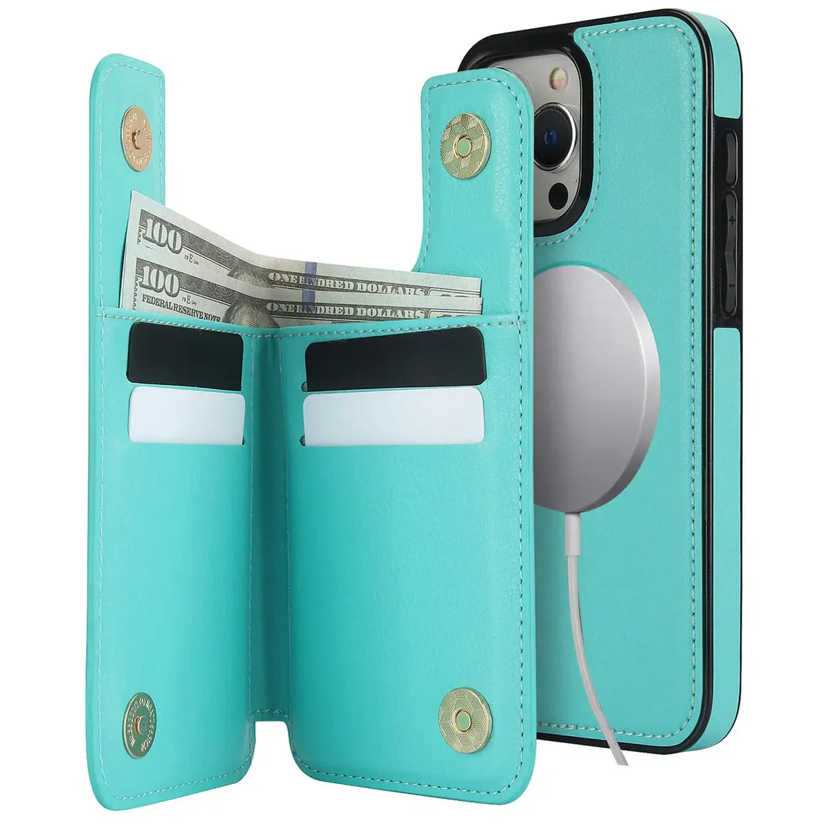 Hqcasing iPhone Wallet Case, 4 Card Slots, Cash Slot, RFID Blocking, Magnetic, MagSafe Compatible