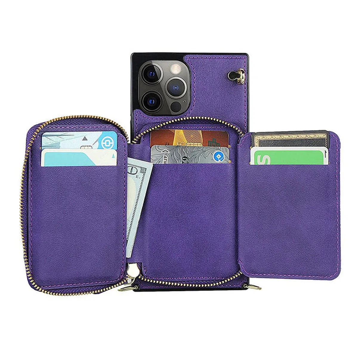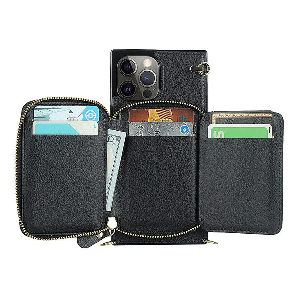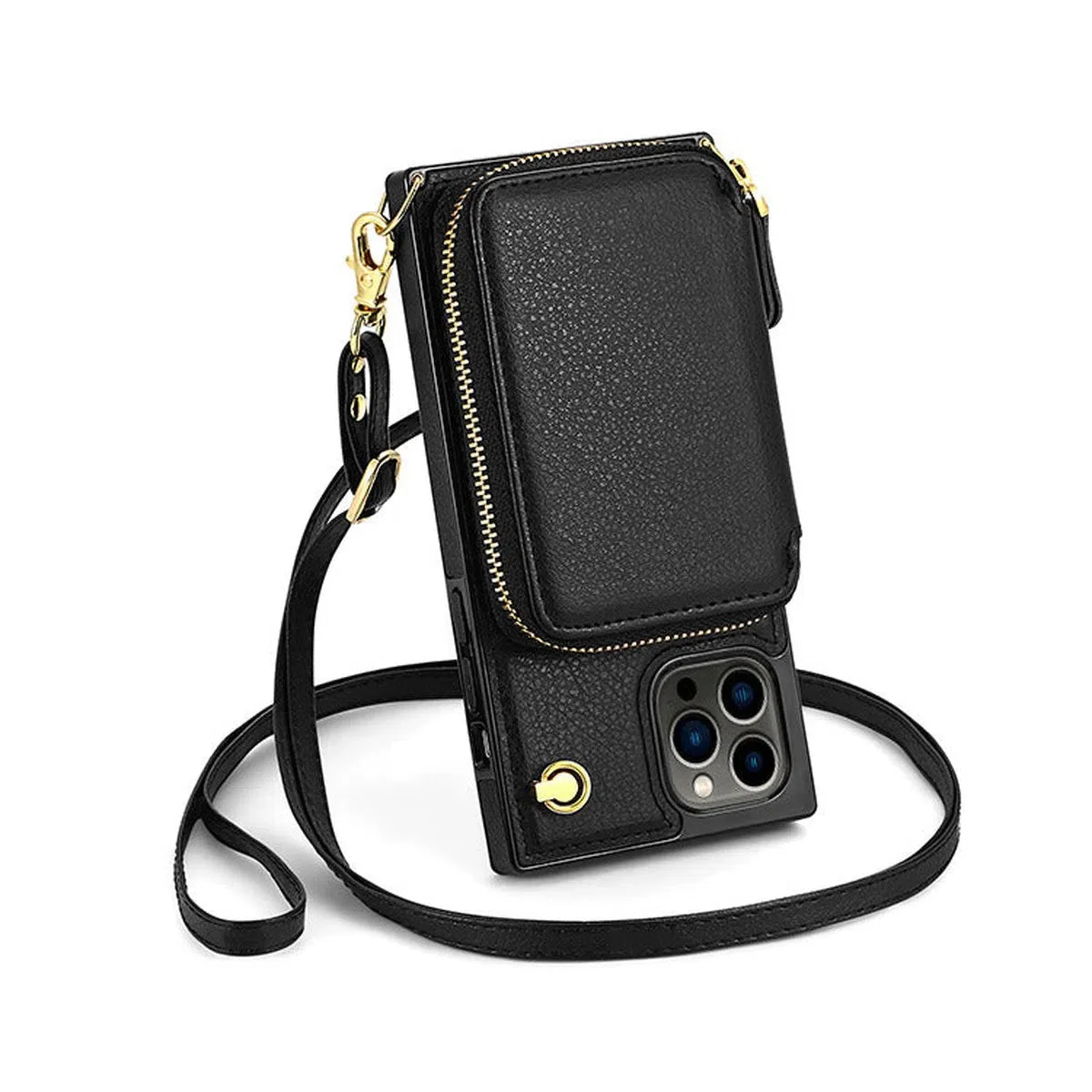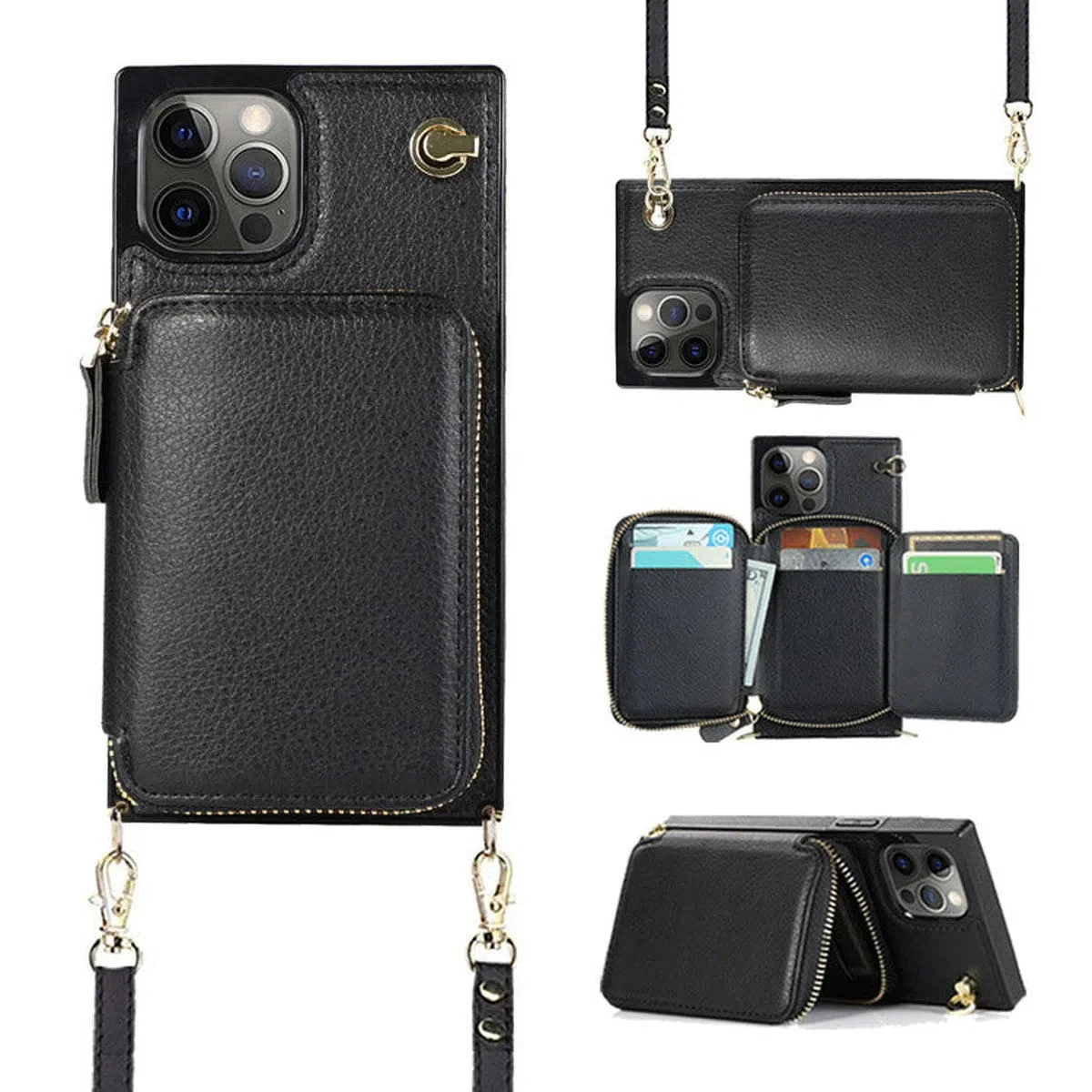 Hqcasing Classic Crossbody Wallet Phone Case, Premium Leather, Credit Card Holder, Zipper Pocket Purse Handbag, Kickstand Shockproof Case