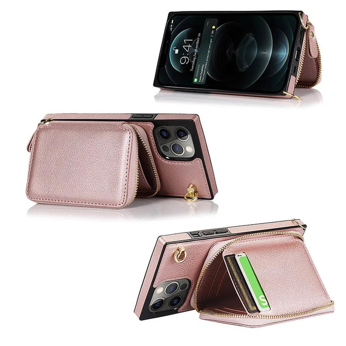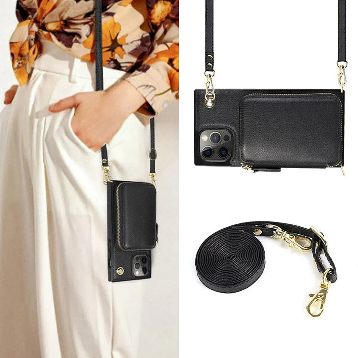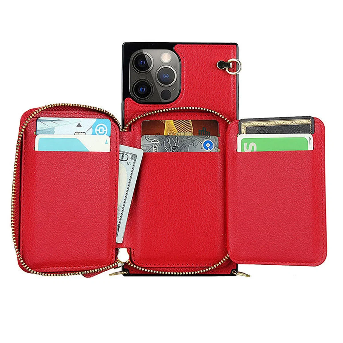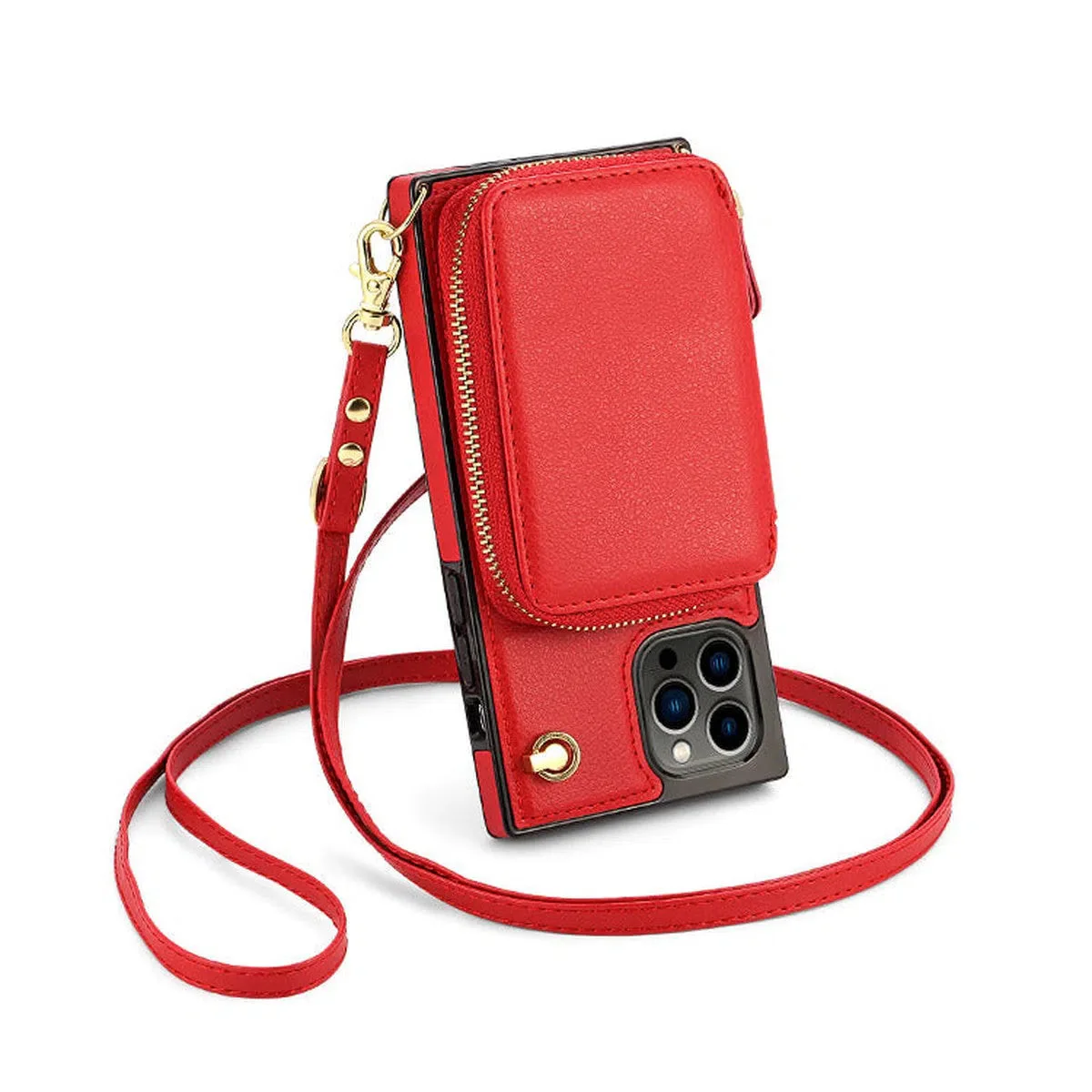 Hqcasing Classic Crossbody Wallet Phone Case, Premium Leather, Credit Card Holder, Zipper Pocket Purse Handbag, Kickstand Shockproof Case