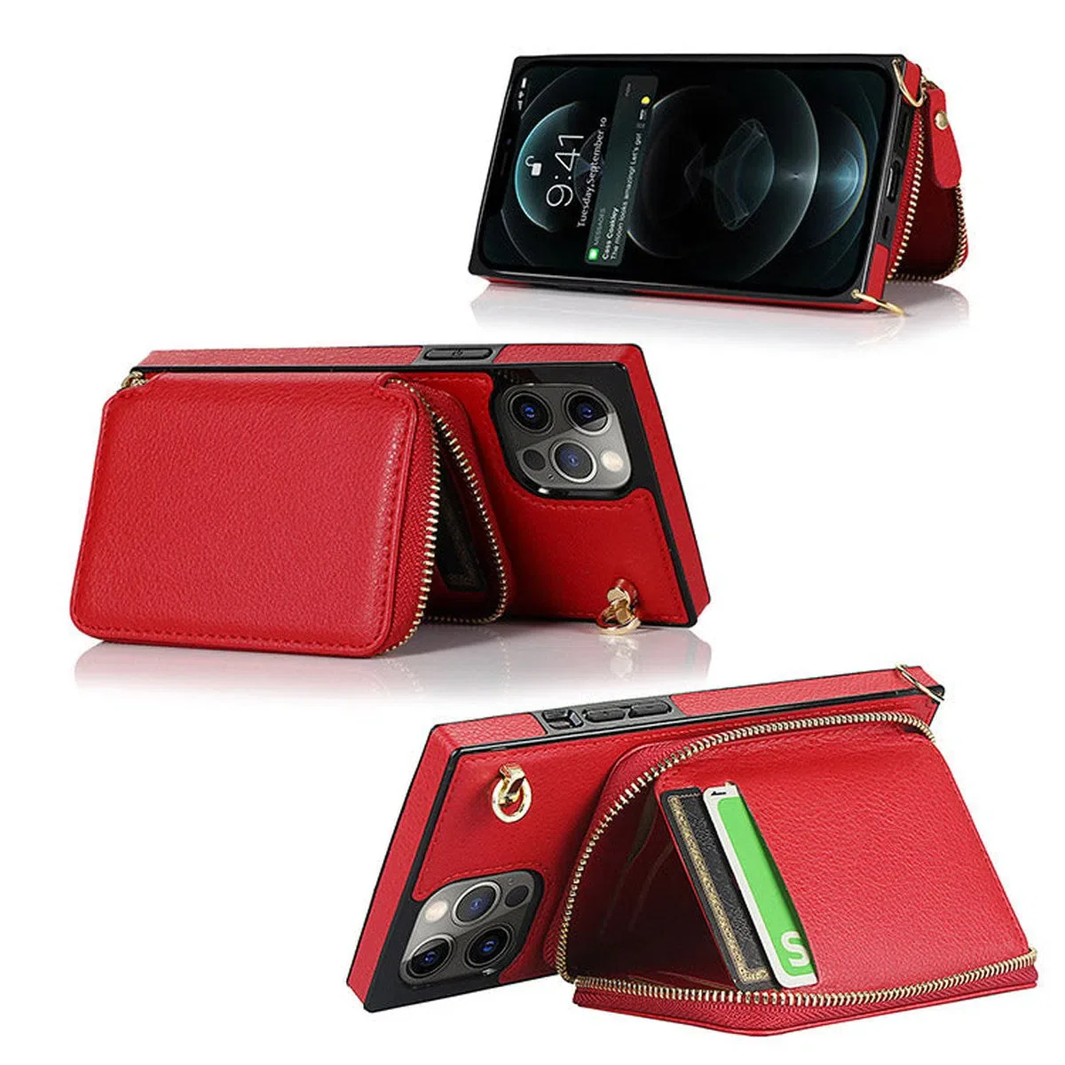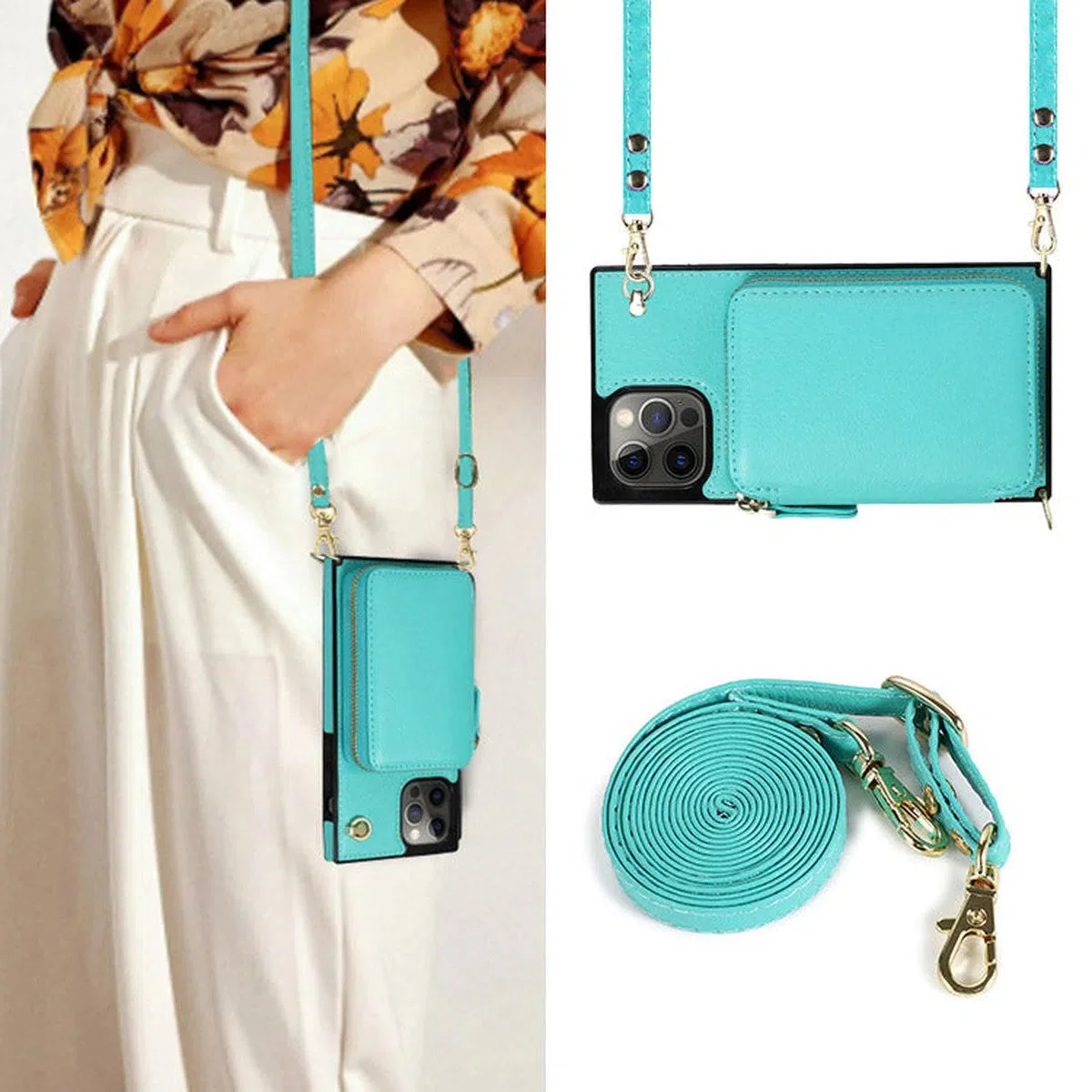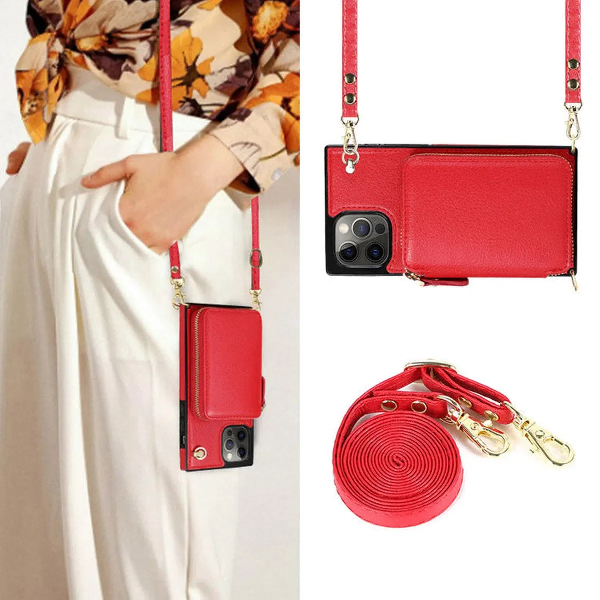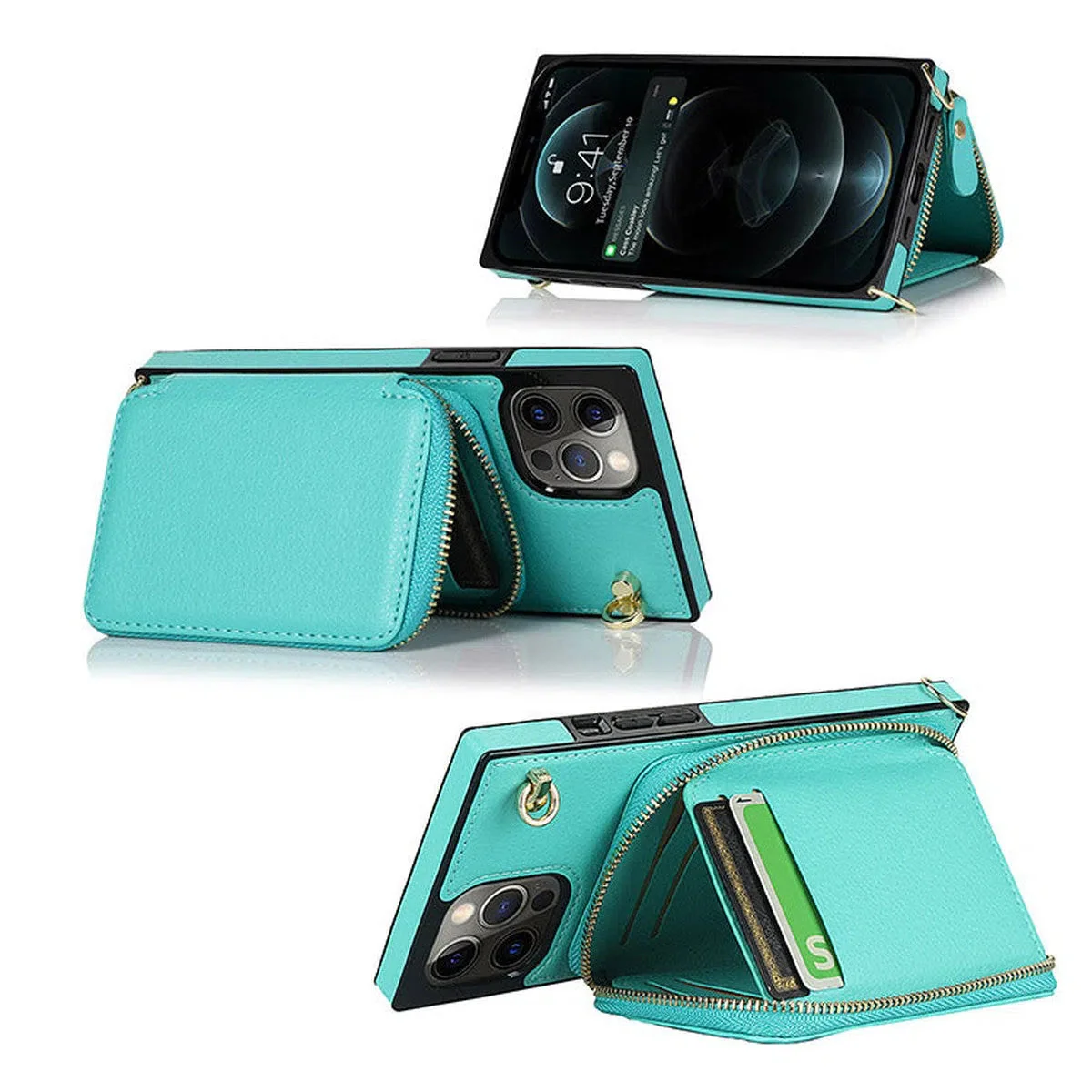 Hqcasing Classic Crossbody Wallet Phone Case, Premium Leather, Credit Card Holder, Zipper Pocket Purse Handbag, Kickstand Shockproof Case