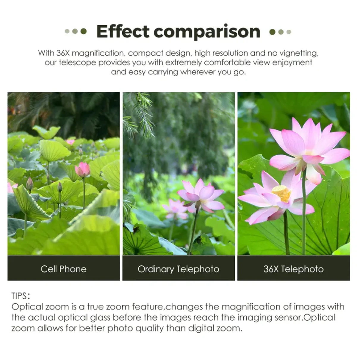 Caseles HD 36X Metal Telephoto Monocular Lens with Tripod, Optical Zoom Phone Lens for Smartphones