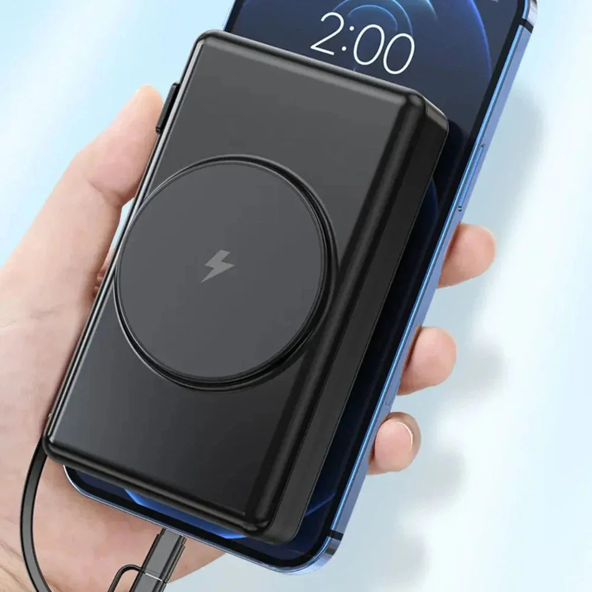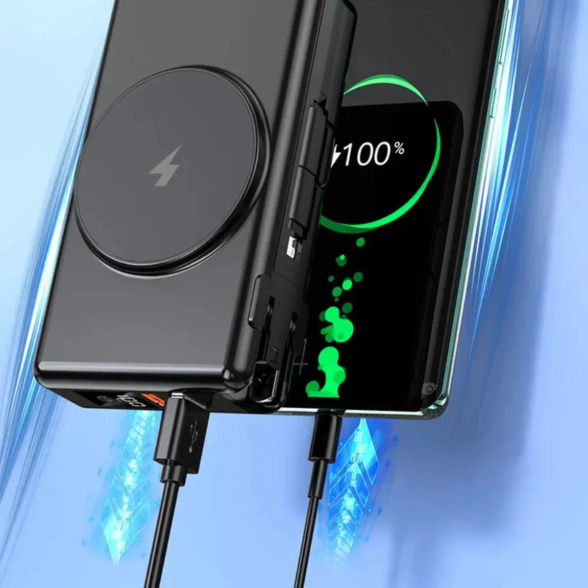- Built-In Charging Cables: With built-in Lightning and USB-C cables, there’s no need to carry extra cords. Fast-charging support ensures you’re always ready to power up.