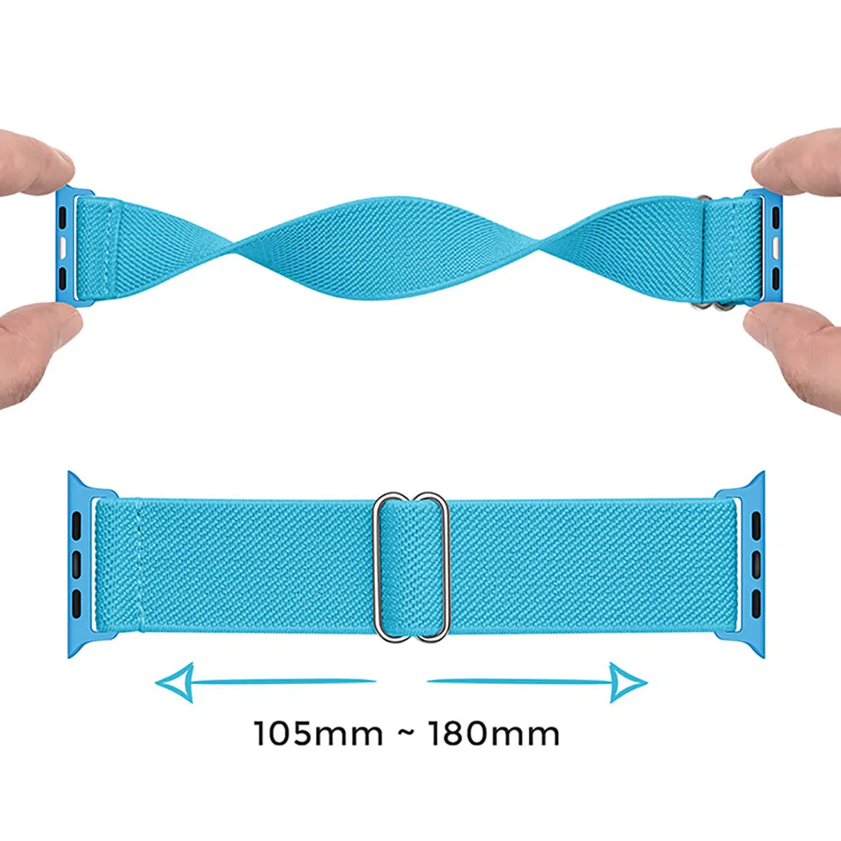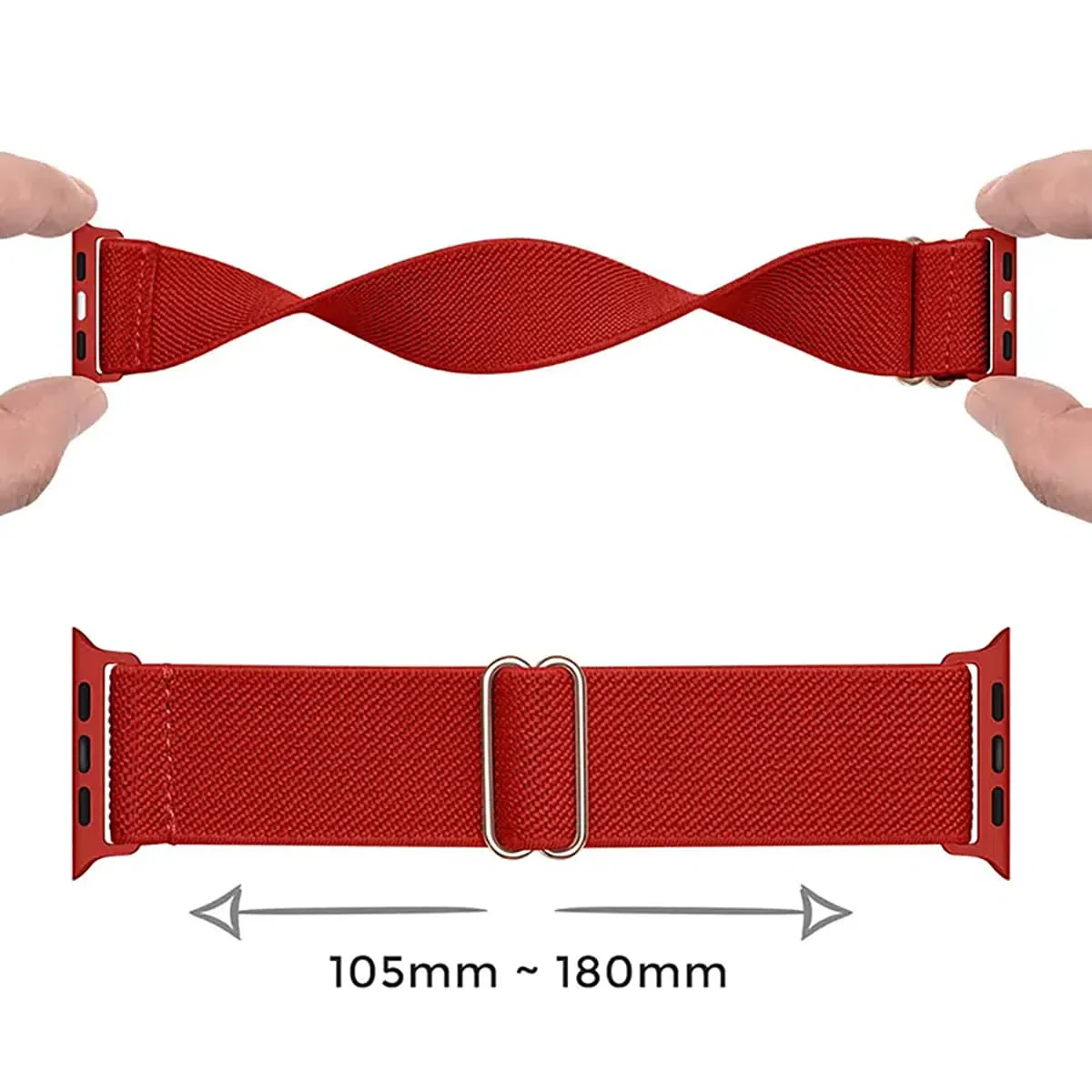- Easy Installation: Simple design, No tool or special technique needed, interchange easily. The adapter are produced through special craft technique, take off your watch band, then slide into the watch band, loose or tight it up with the metal buckle. it will fit snugly with your watch as long as you want. Universal Accessories: Our stretch band length is 6.5 Inches, but could fits wrist size from 4.5 inches to 8.66 inches. For safety and comforting purpose, other size are not recommended.
