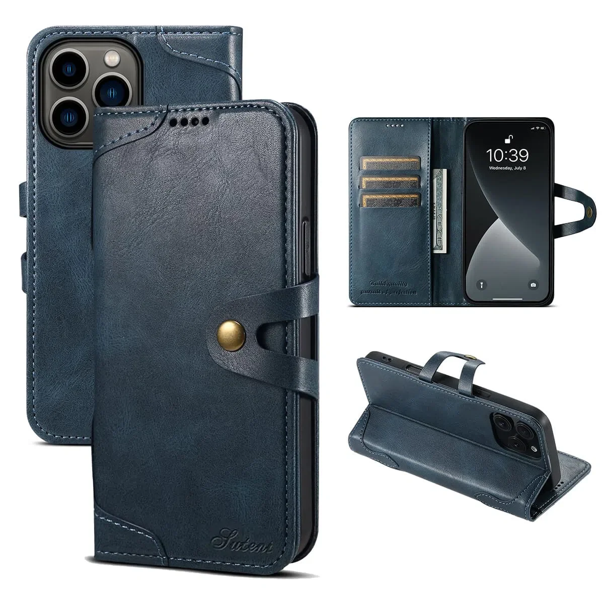 Hqcasing Classic Book Flip Folio Wallet Phone Case, Magnetic Closure, Flip Folio, Card Holder, Kickstand