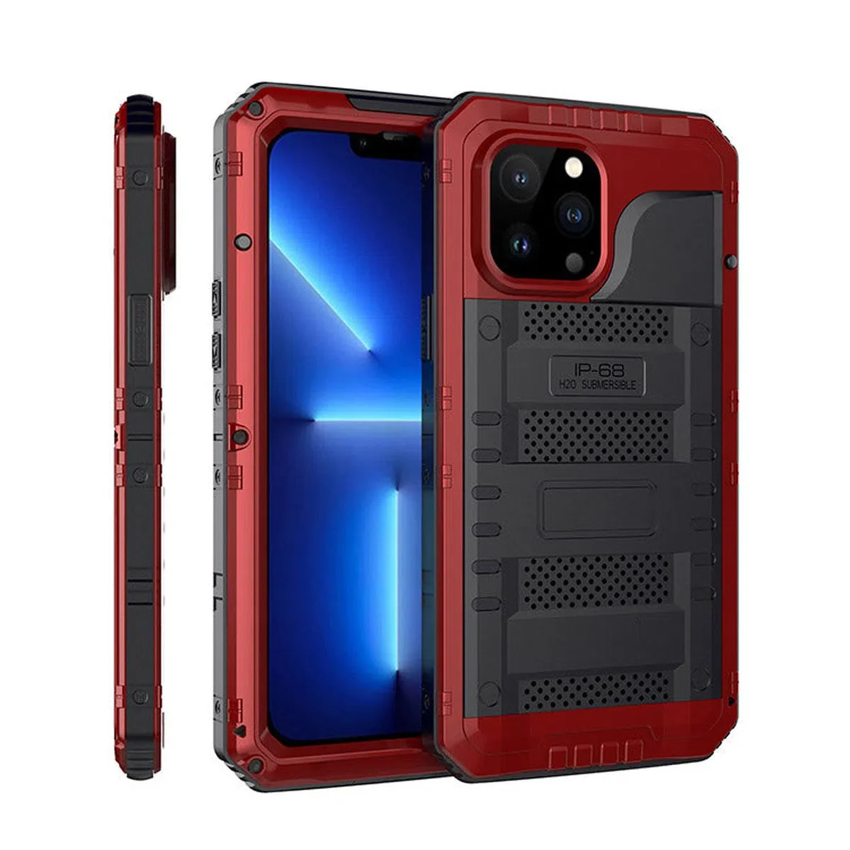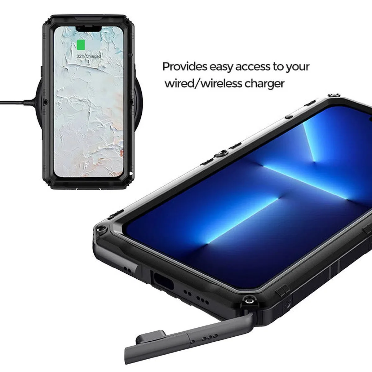 Hqcasing Metal Waterproof Phone Case, with Built in Screen Protector, FullBody Protective Shockproof Heavy Duty Rugged Defender Cover