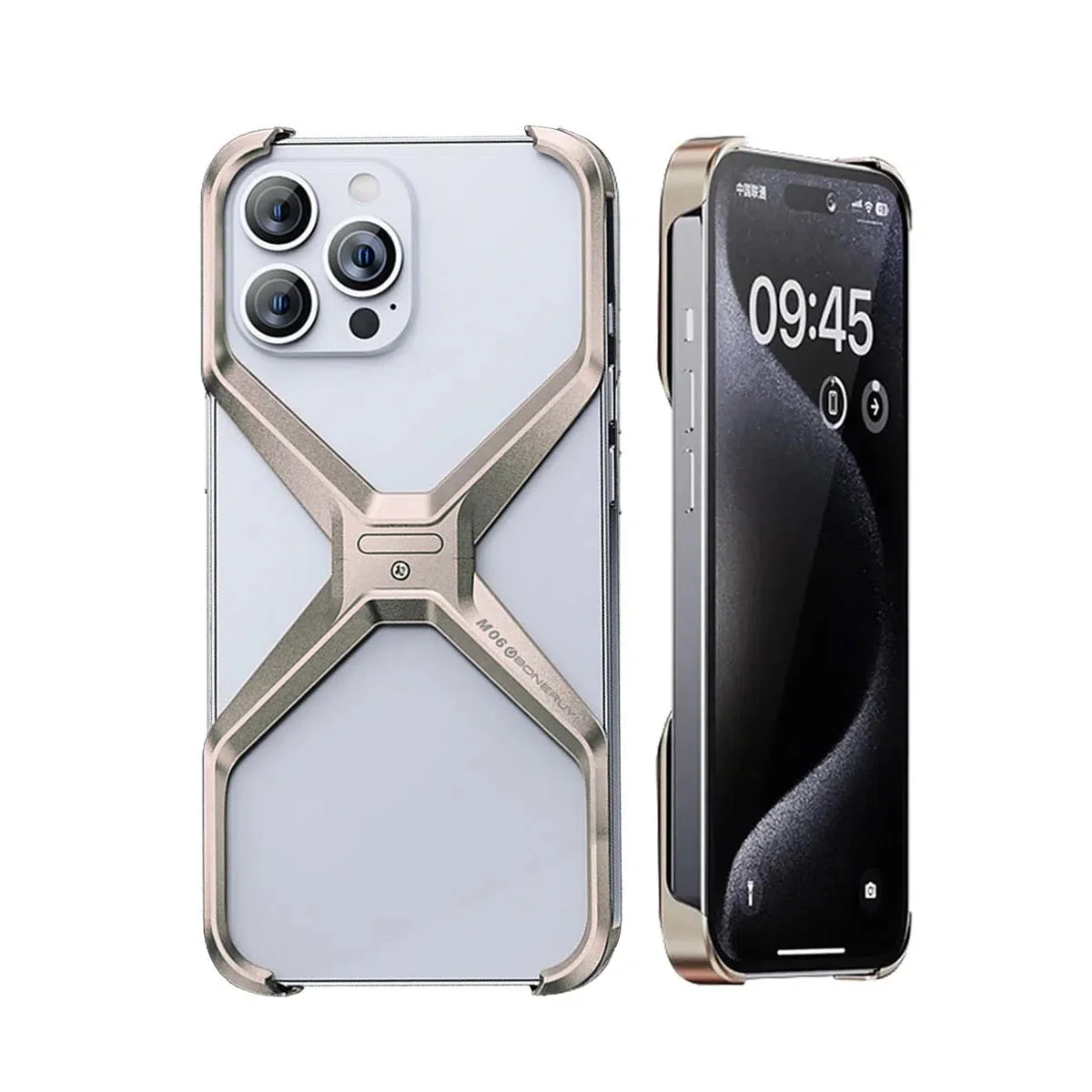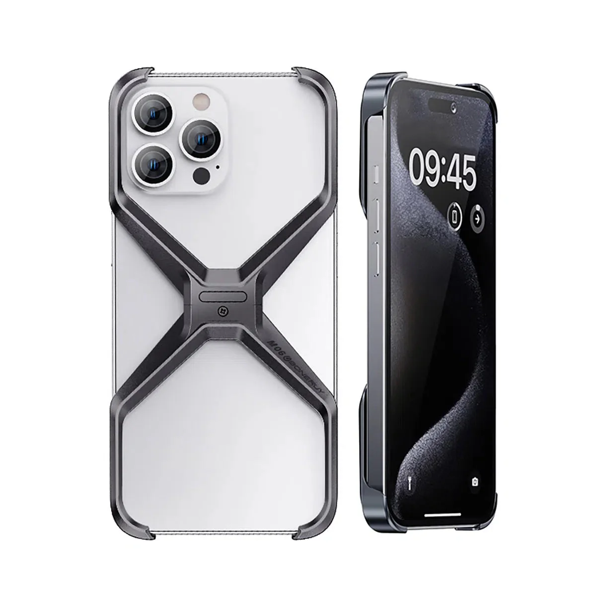 Hqcasing Metal Frameless Phone Case, X Shaped Cool Design, Slim Aluminum Alloy Bumper, Shockproof