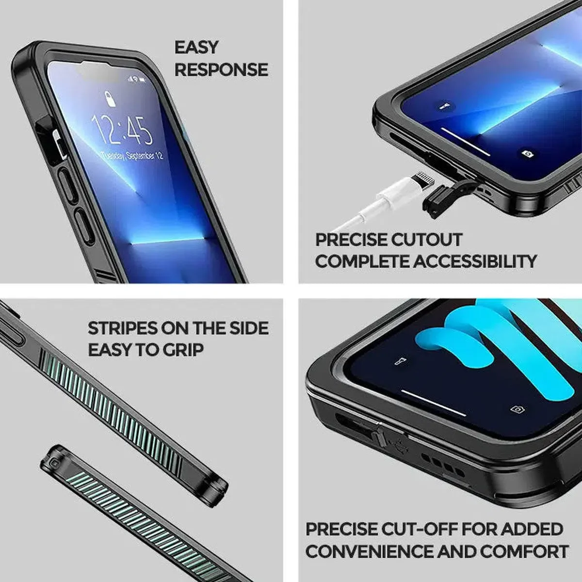 • Full-body Protection: iPhone 13 case equipped with four shock-absorption bumpers protects your phone from drops and impacts. Full sealed protector makes your phone snowproof, dustproof, shockproof, anti-scratch, anti-dirty all the time. Full sealed design exceeds military standard to adapt any outdoor activities. With a phone strap for convenient carrying, Face ID Compatible.